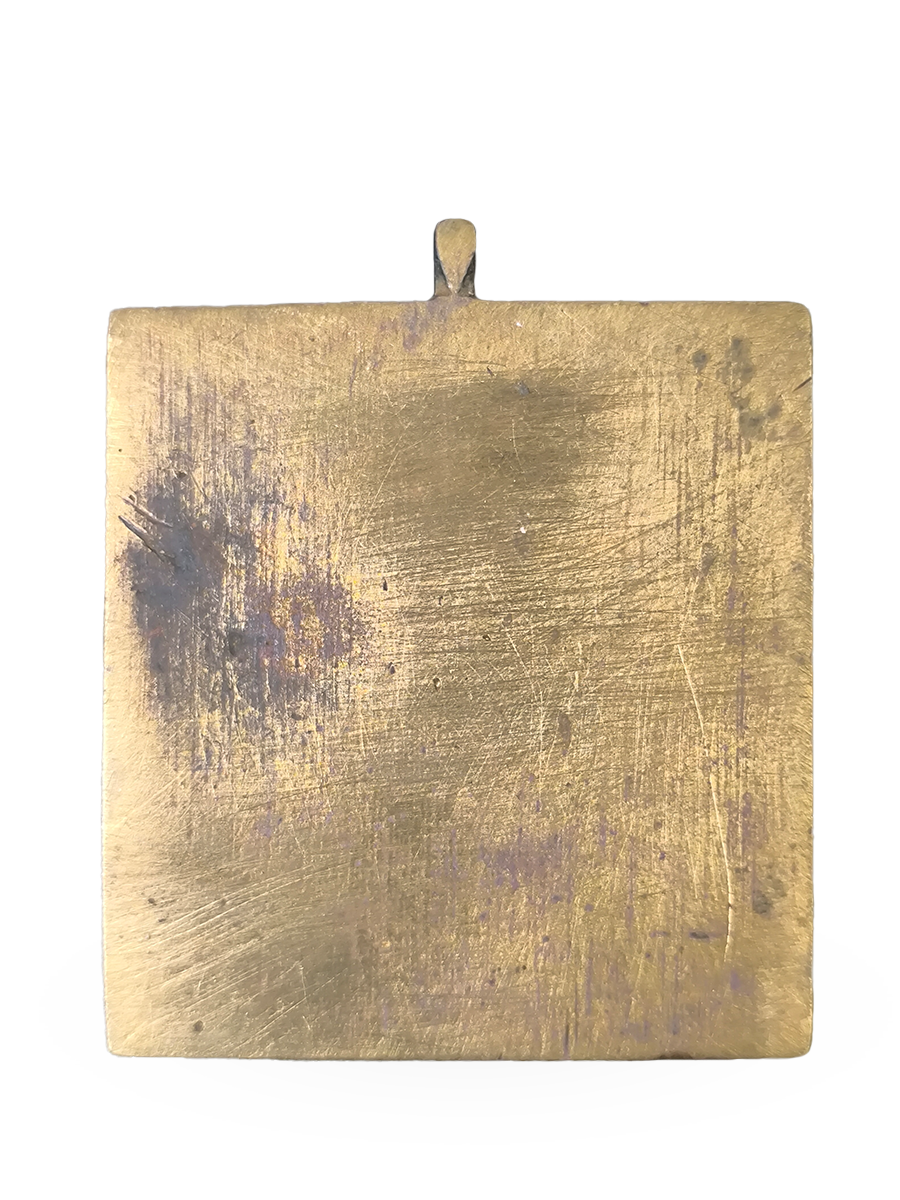 Внутреннее пространство медной иконы содержит несколько узоров в виде ромба и горизонтальные полосы, изображающие землю. Над головами святых расположены надписи: «С М ГЕWРГIЙ», «С СВЩ АНТИПI», «С СВЩ ВЛАСI».