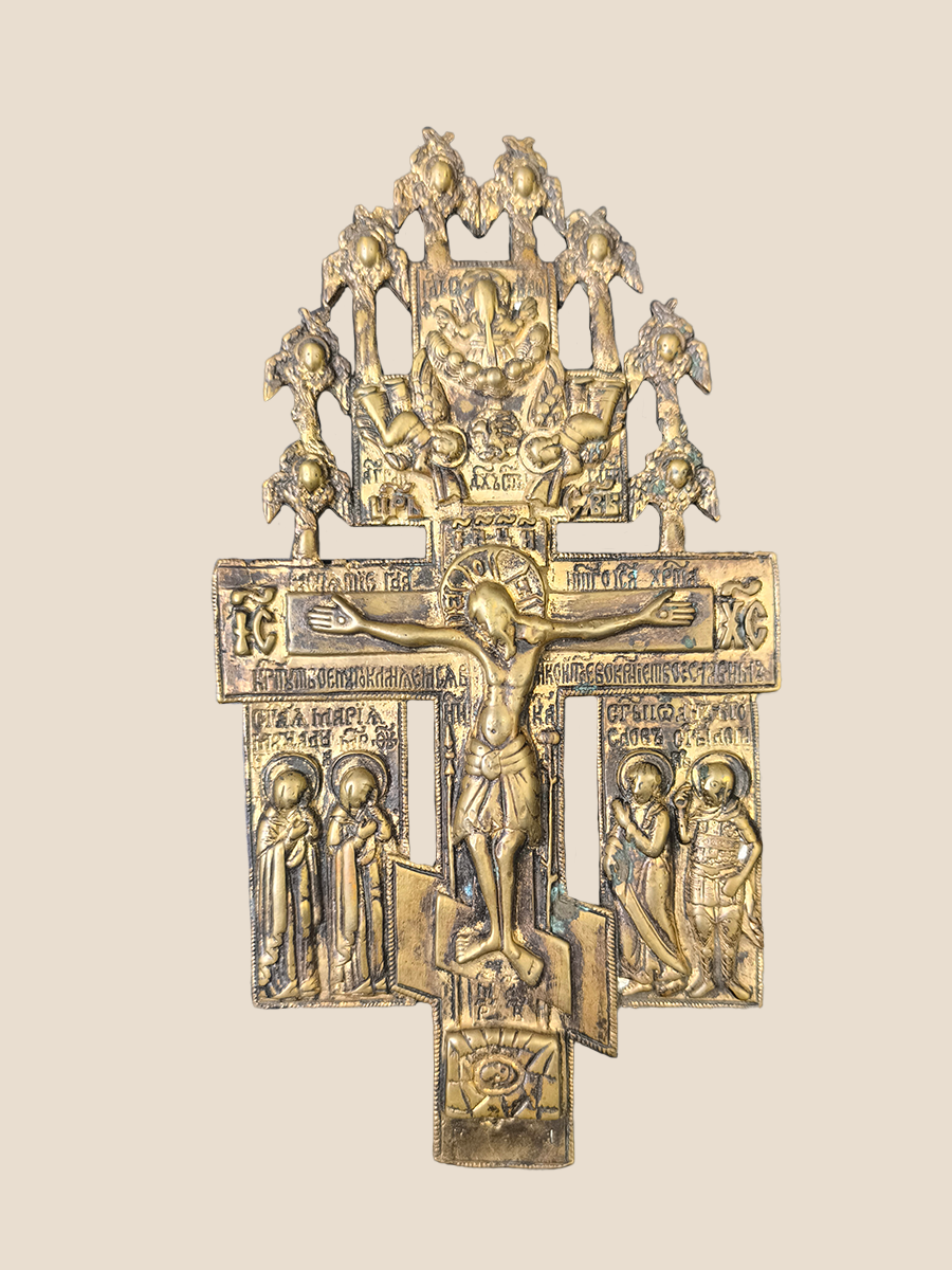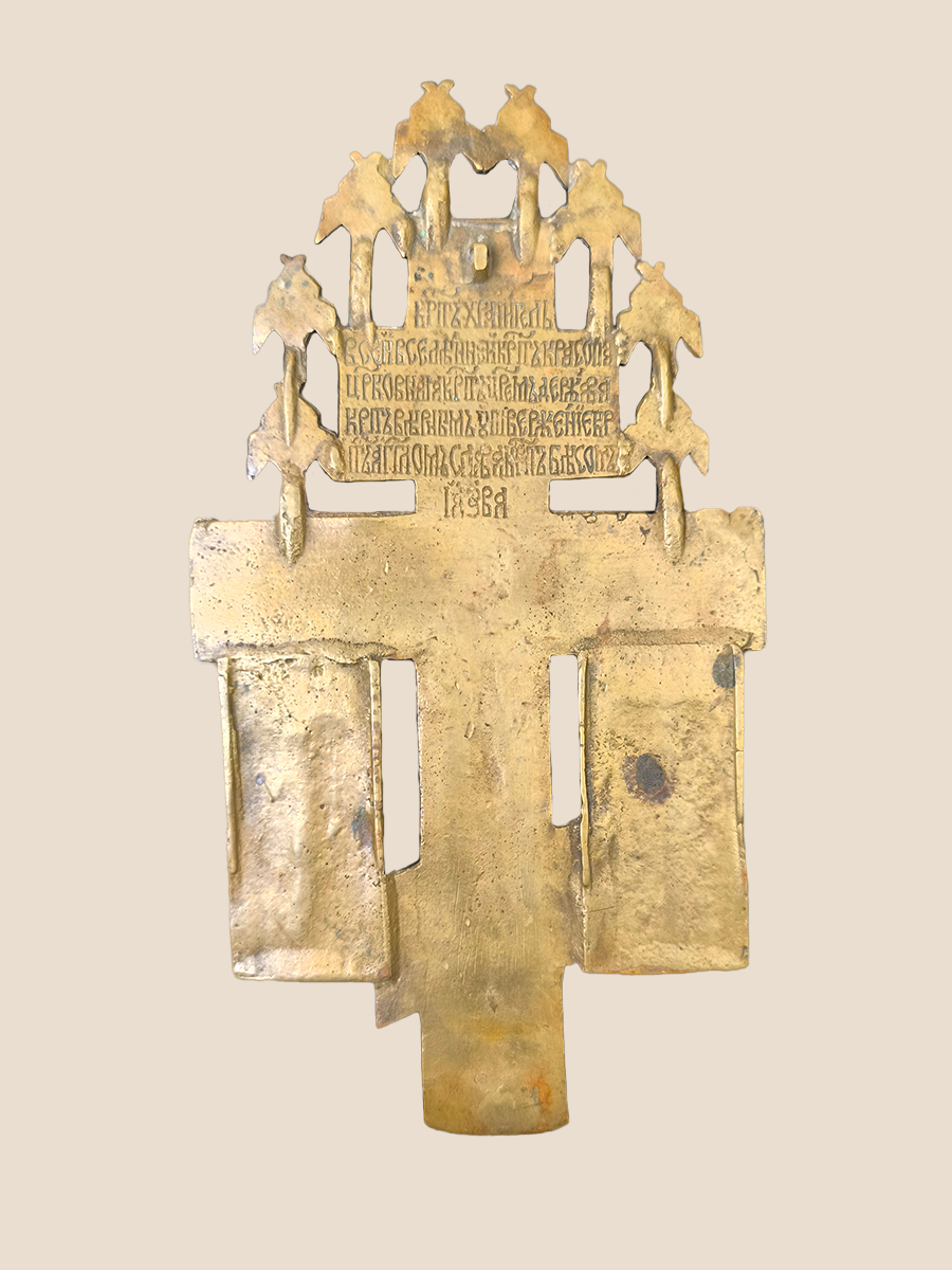 -Киотный крест с избранными праздниками и 8 херувимами – артефакт 19 века, изготовленный из медного сплава и покрыт золотом.