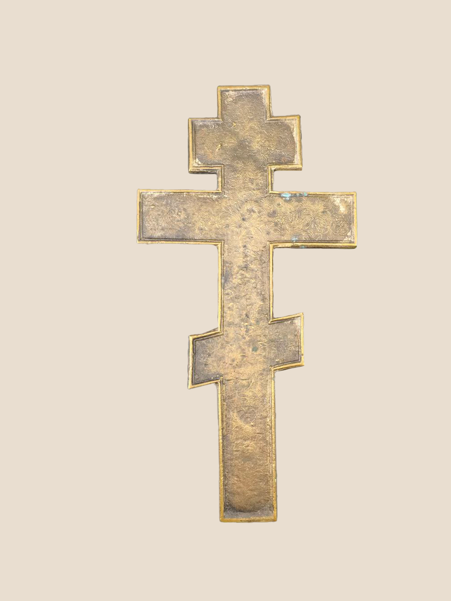 - Подлинный большой Напрестольный крест с текстом с растительным орнаментом в синей эмали