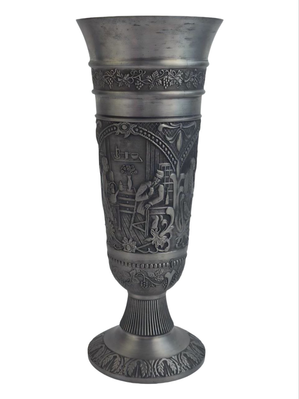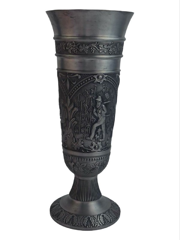 Такие изделия традиционно производятся в Германии и часто украшаются барельефами, сценами быта. Верхняя часть чаши украшена орнаментом в виде виноградной лозы.