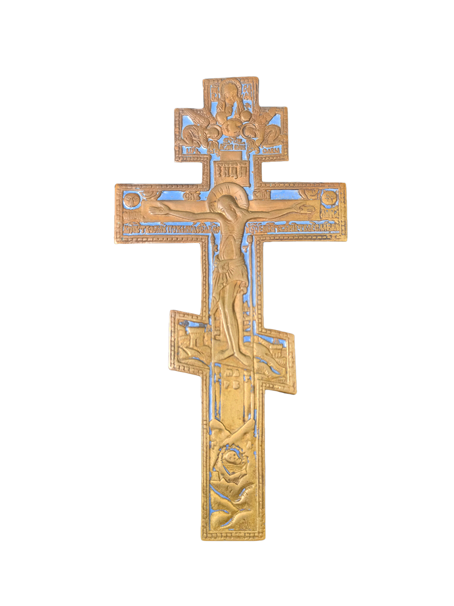 Шестивершковый старообрядческий поморский киотный крест "Распятие Христово" с одной эмалью