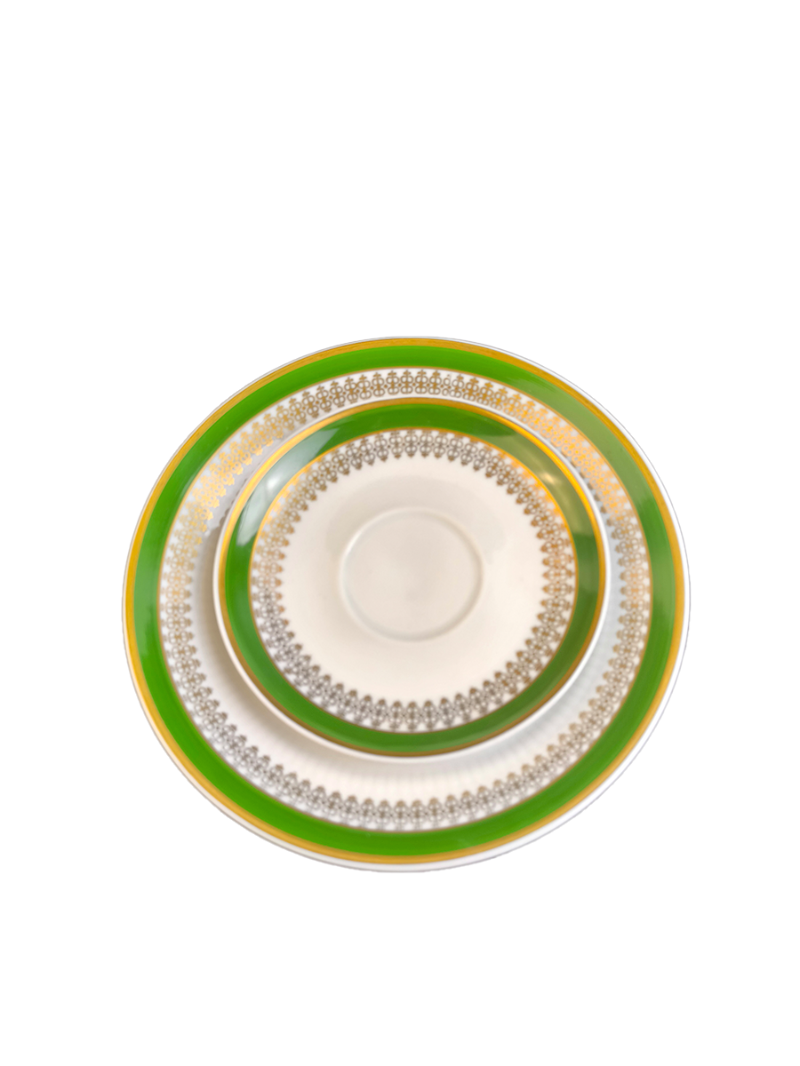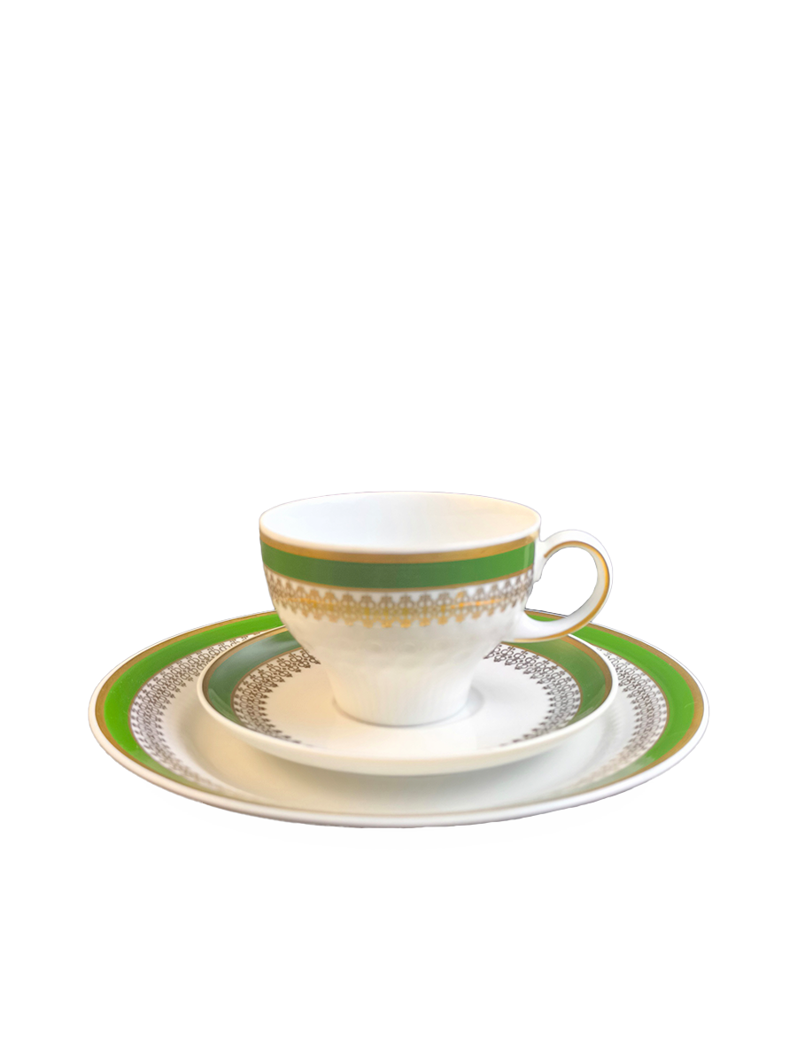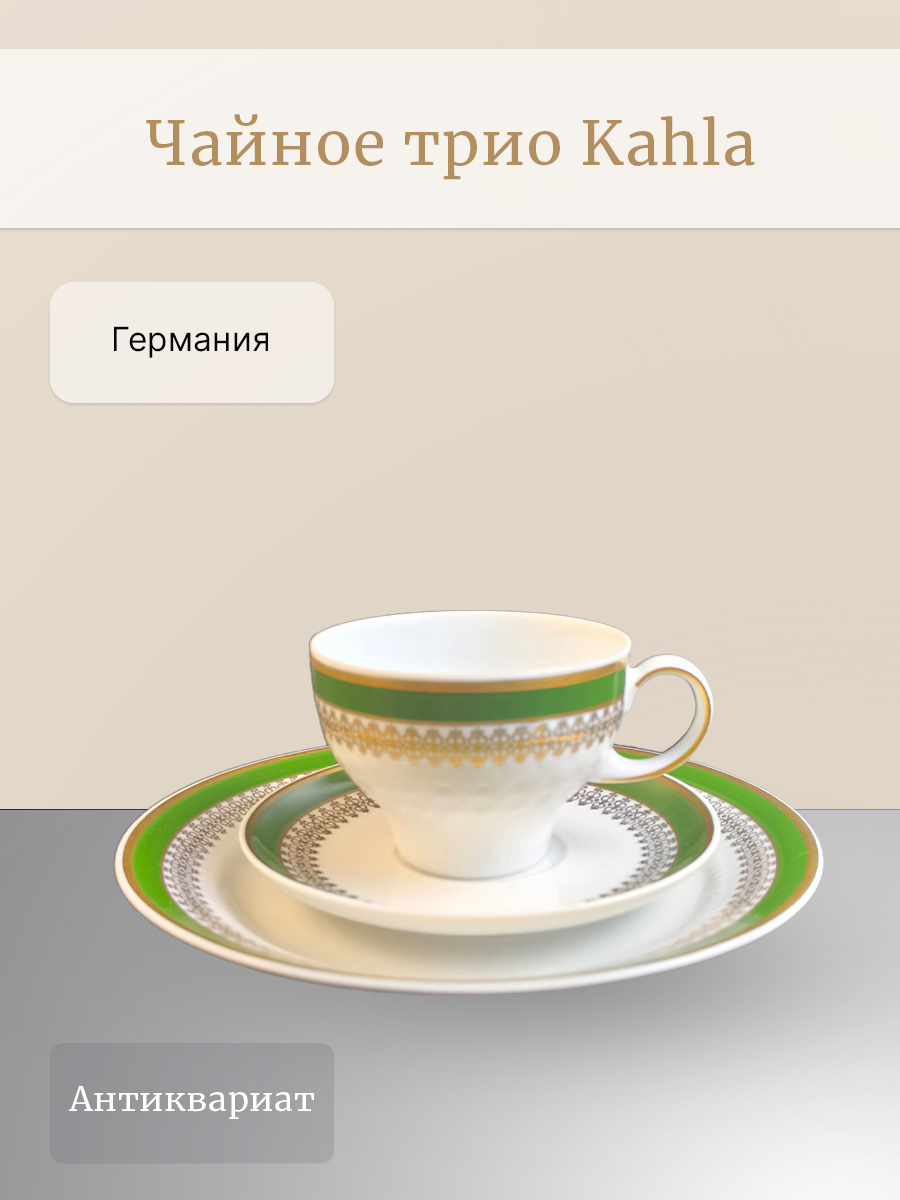 Чайное трио выполнено в бело - зеленой, золотистой гамме. Kahla. 1960-1970 гг.
