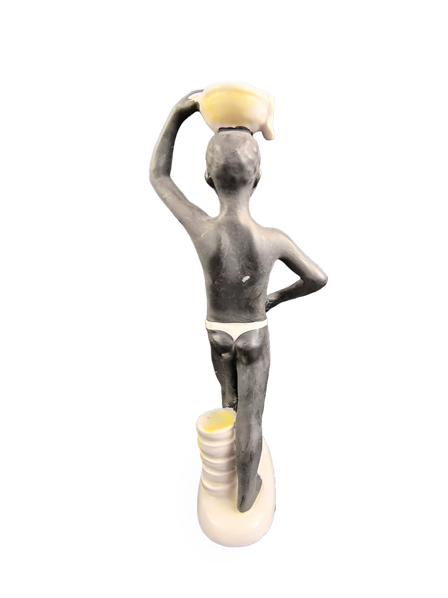 Изображает африканского мальчика в набедренной повязке, несущего корзину на голове.