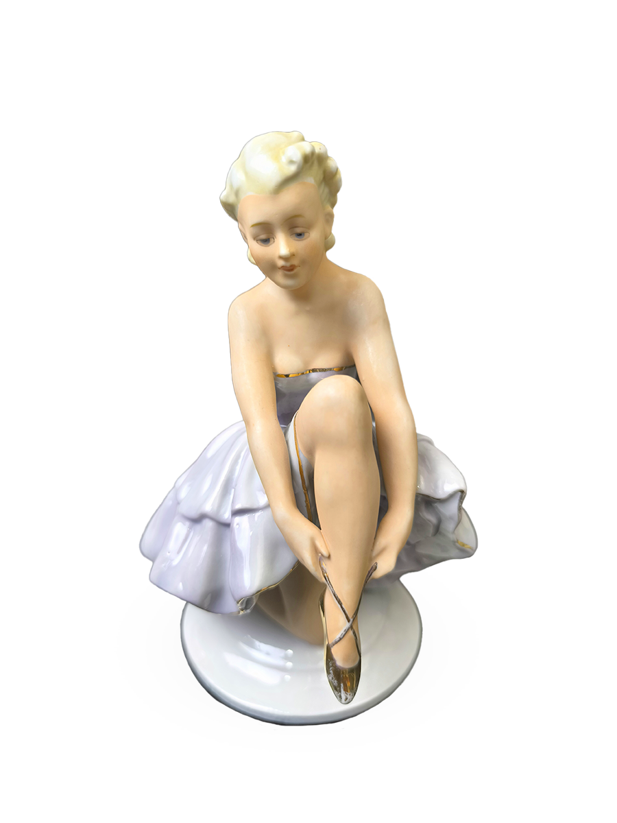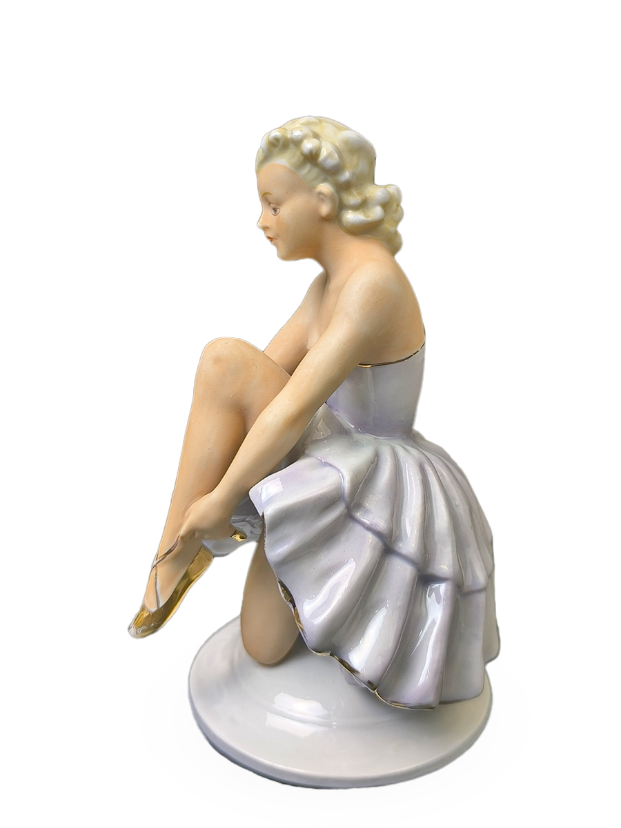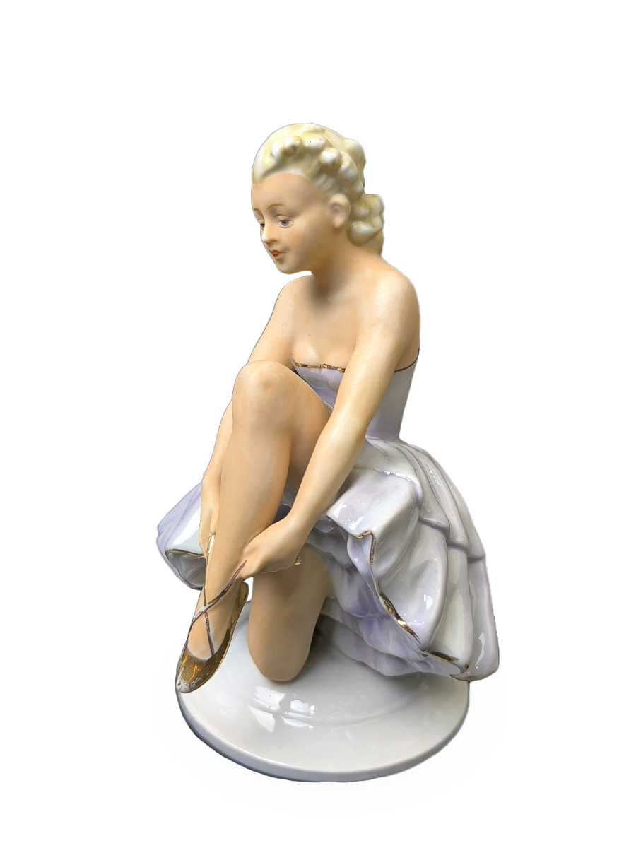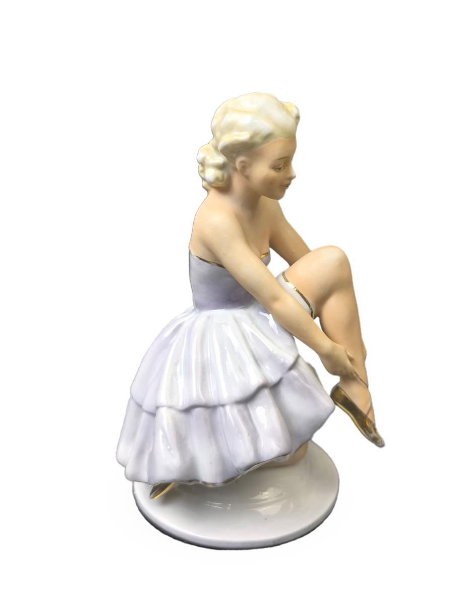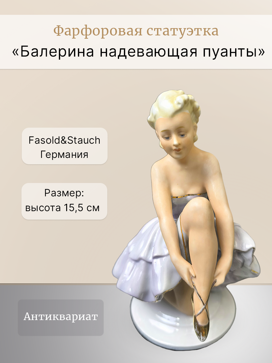 Фарфоровая статуэтка "Балерина надевающая пуанты". Fasold&Stauch.