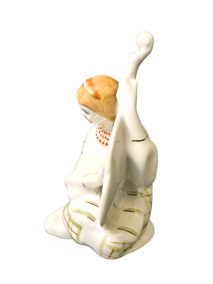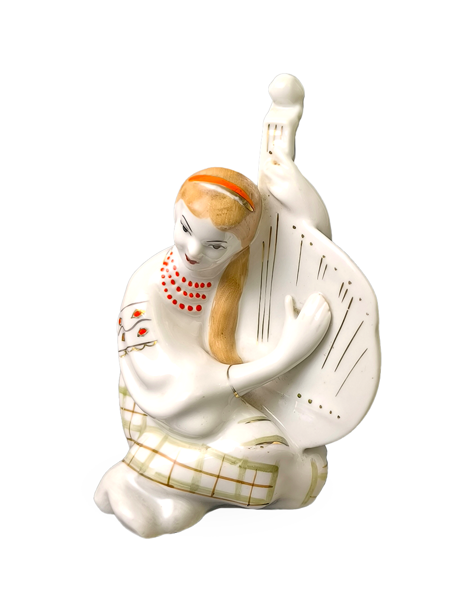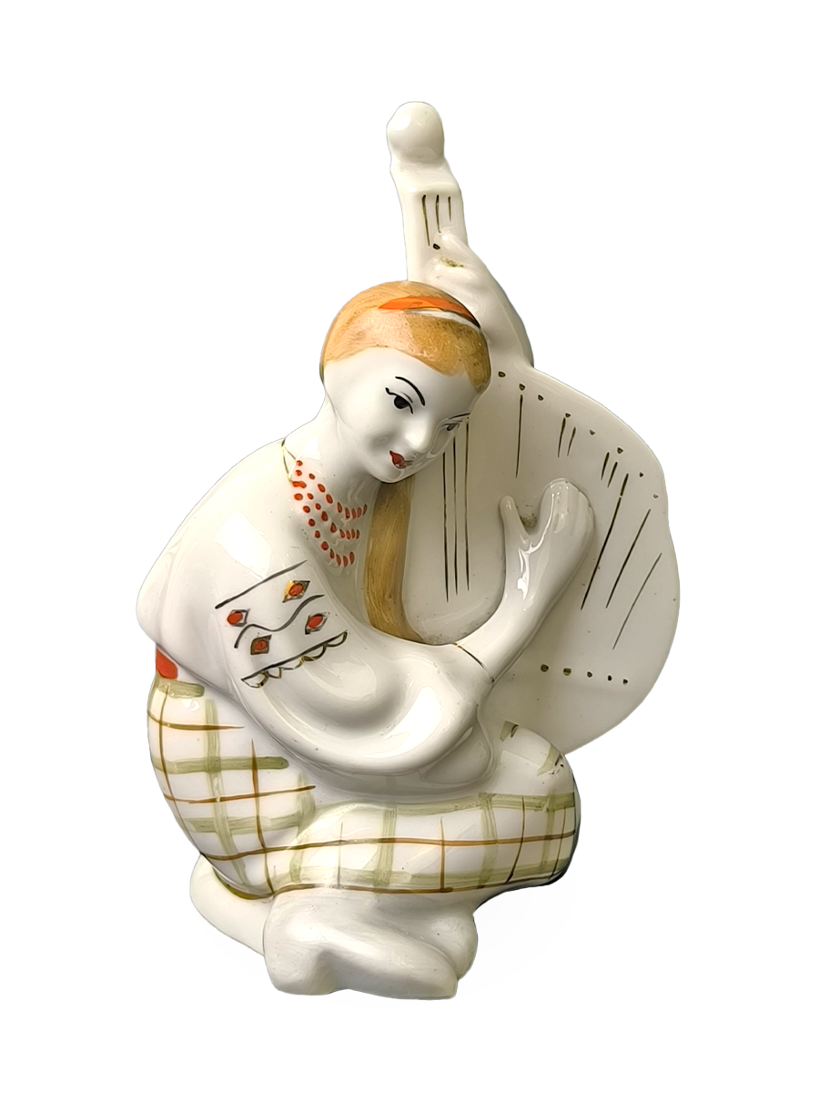 Статуэтка изображает девушку в украинском национальном костюме, играющую на бандуре (украинский многоструйный инструмент).