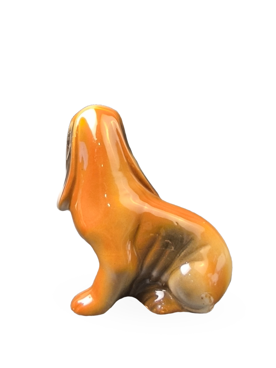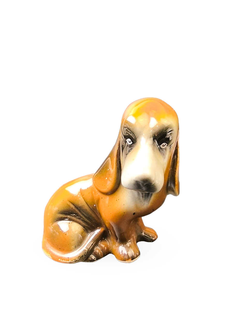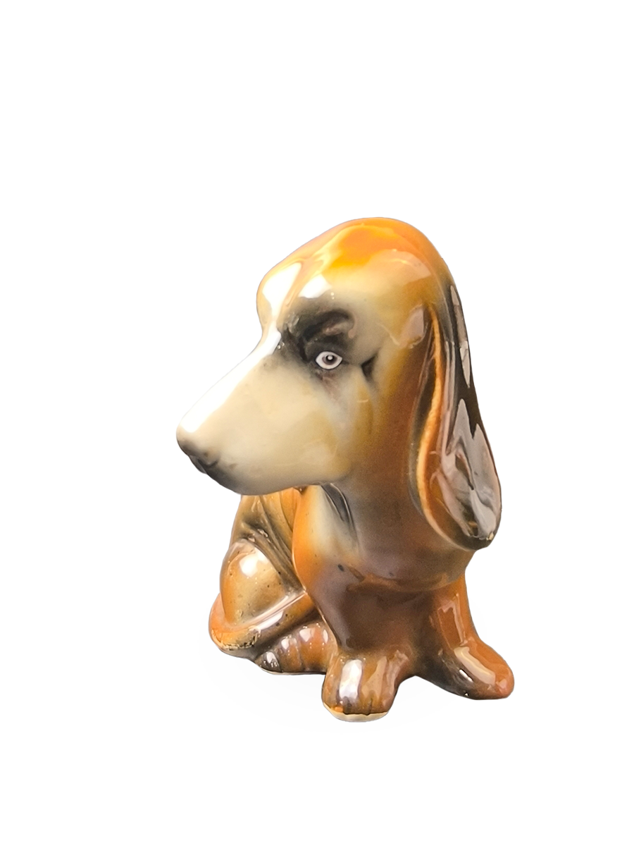 Эта винтажная керамическая фигурка изображает очаровательного бассет-хаунда в классической позе.