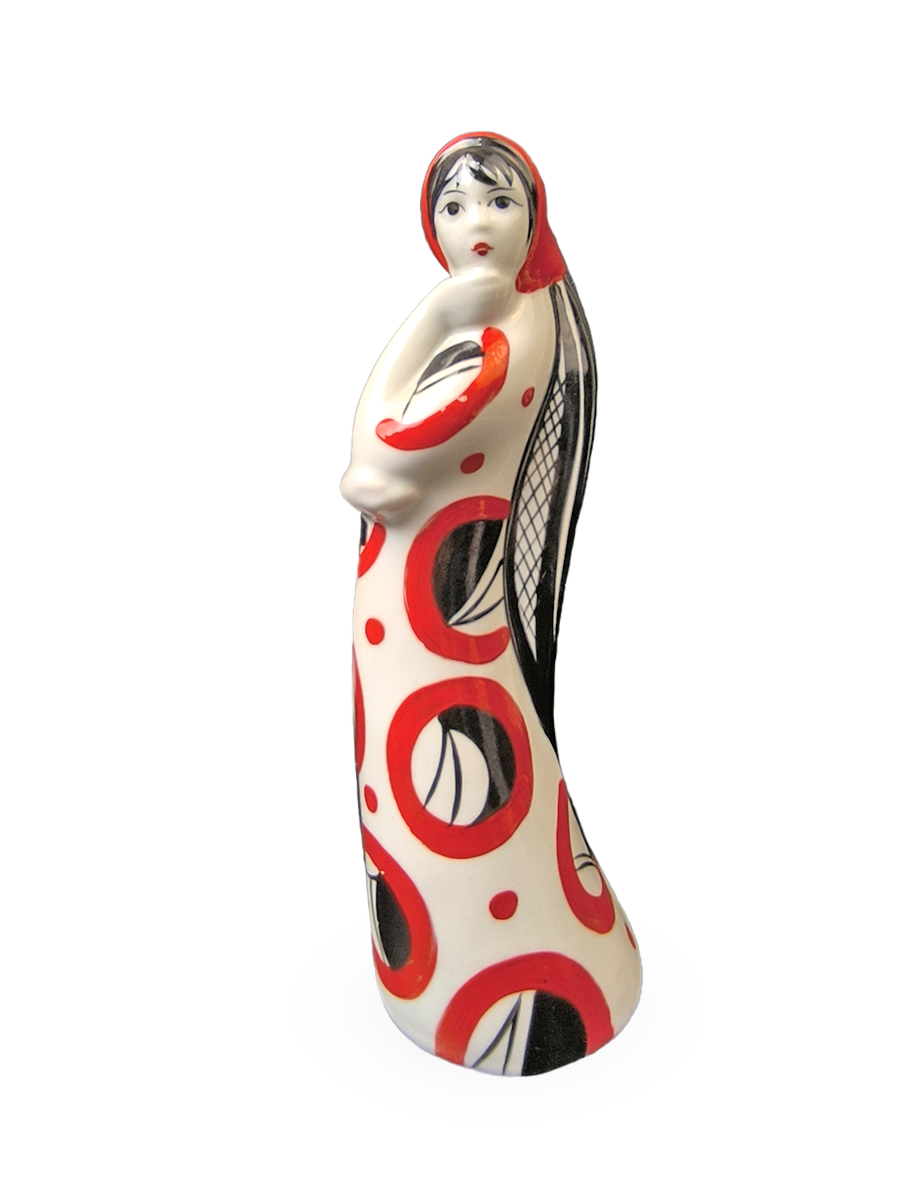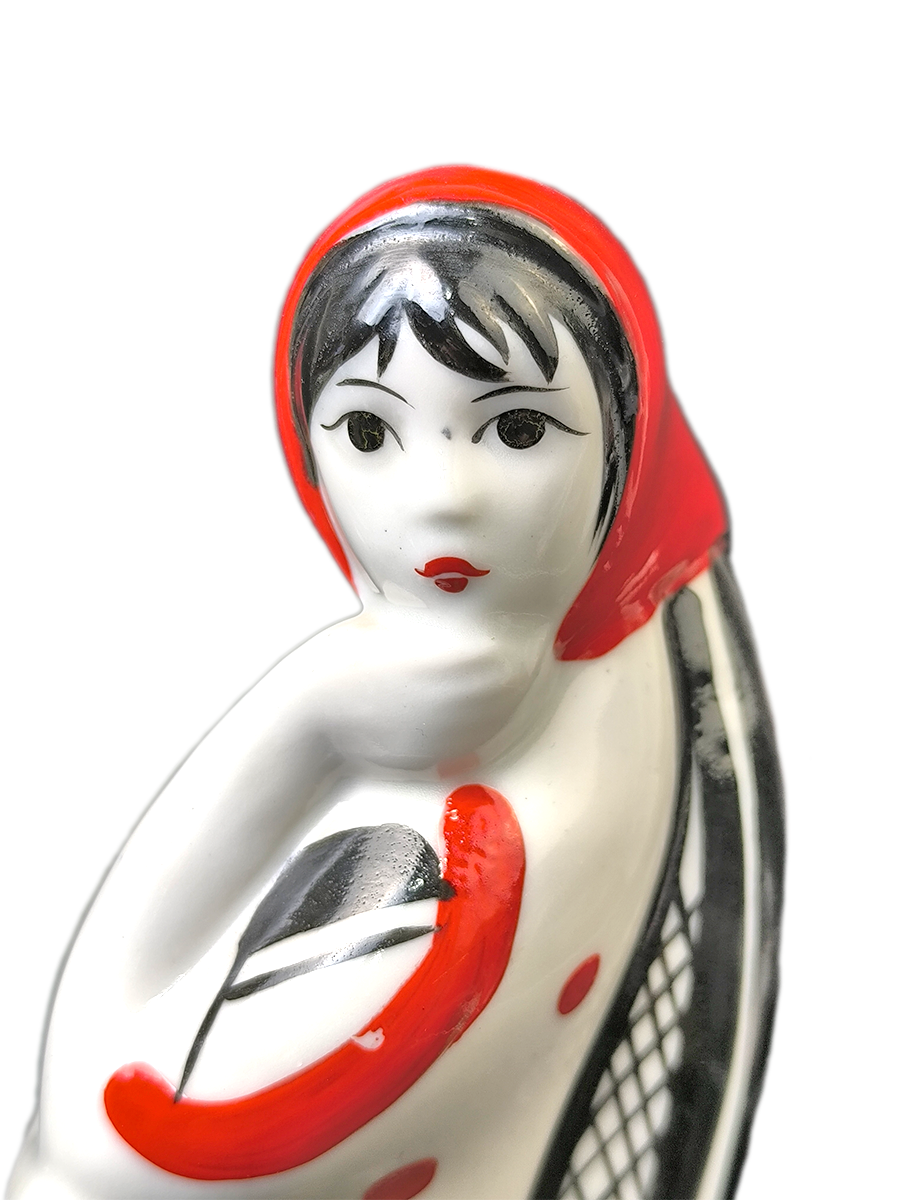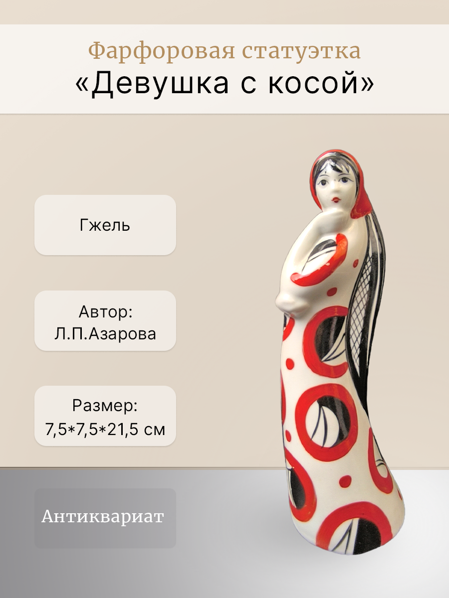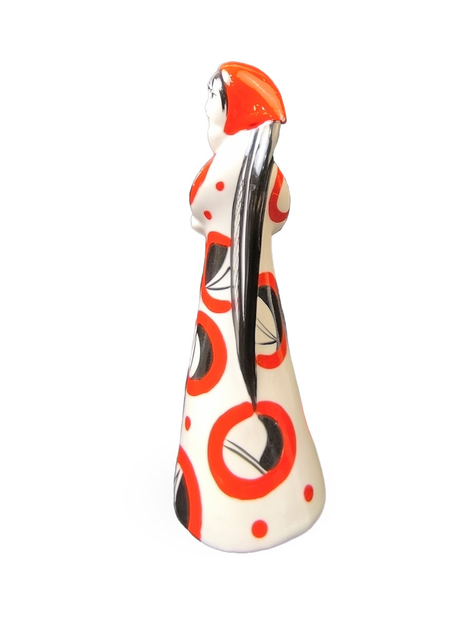 Фарфоровая статуэтка "Девушка с косой" в красном.