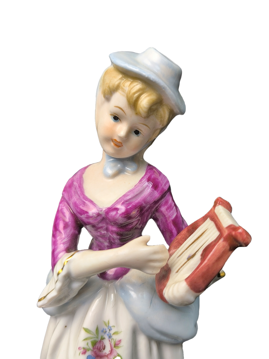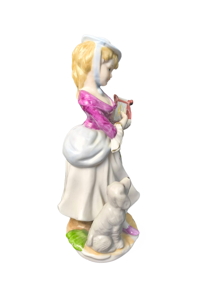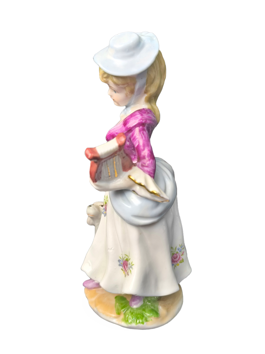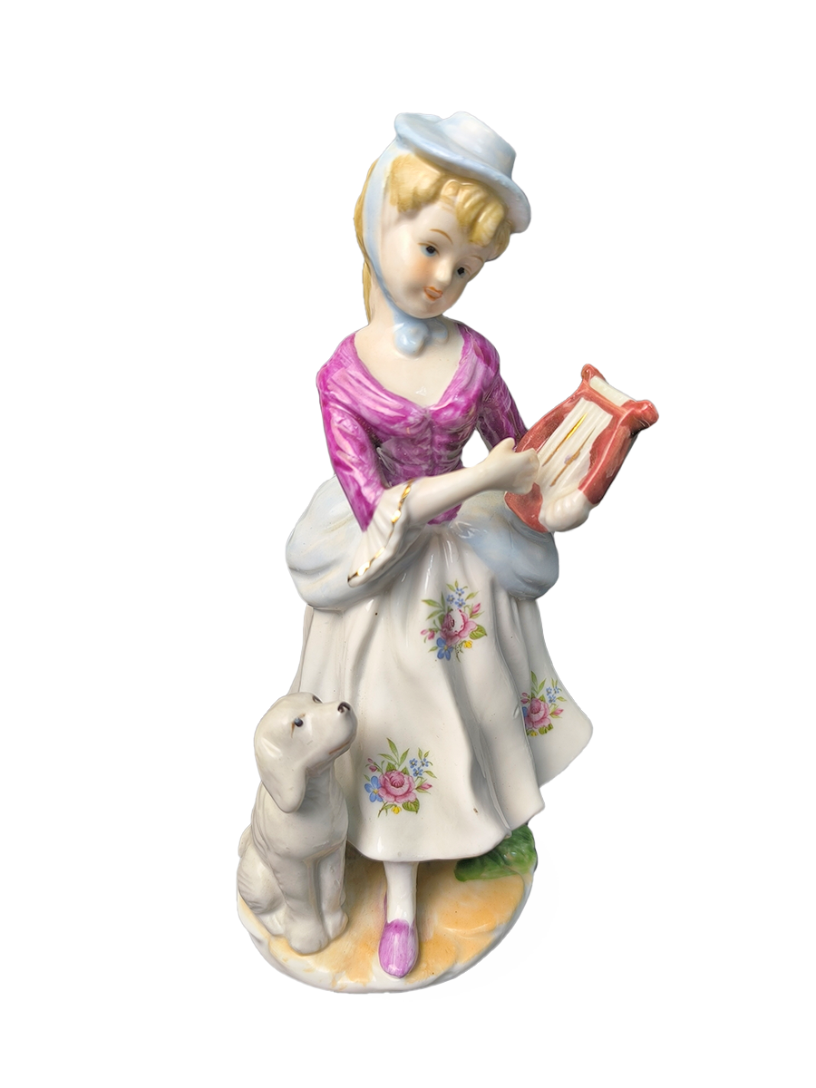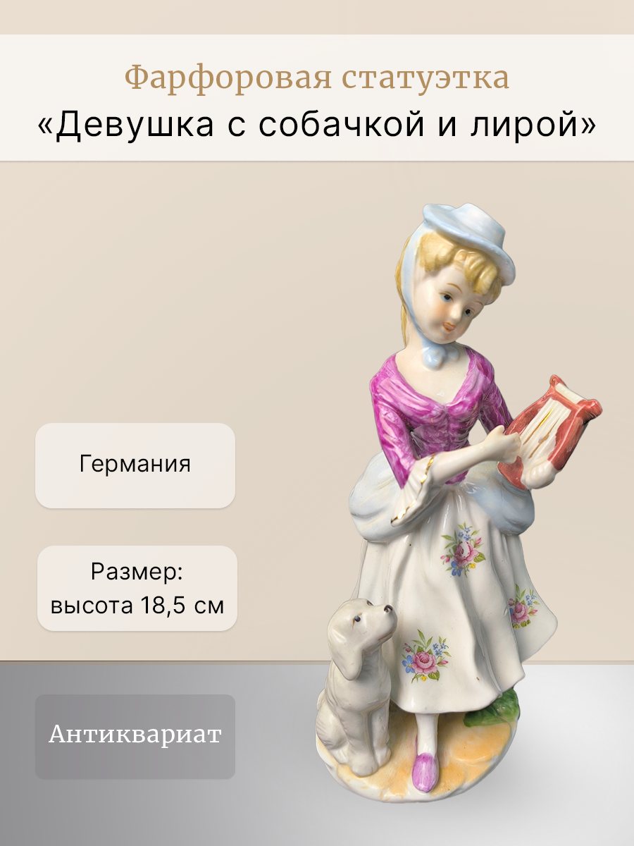Фарфоровая статуэтка "Девушка с собачкой и лирой" Германия (1960 - 1990 гг.).
