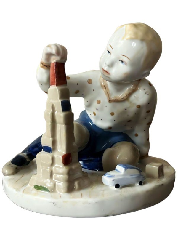 Фарфоровая статуэтка "Мальчик с Кубиками", также известная под названиями "Детство" или "Мальчик, играющий с кубиками".