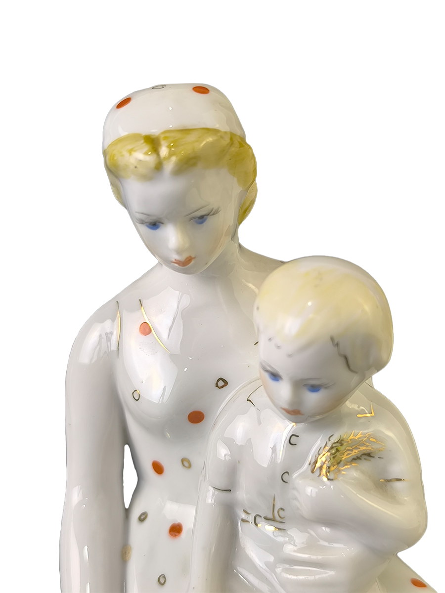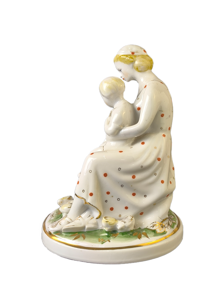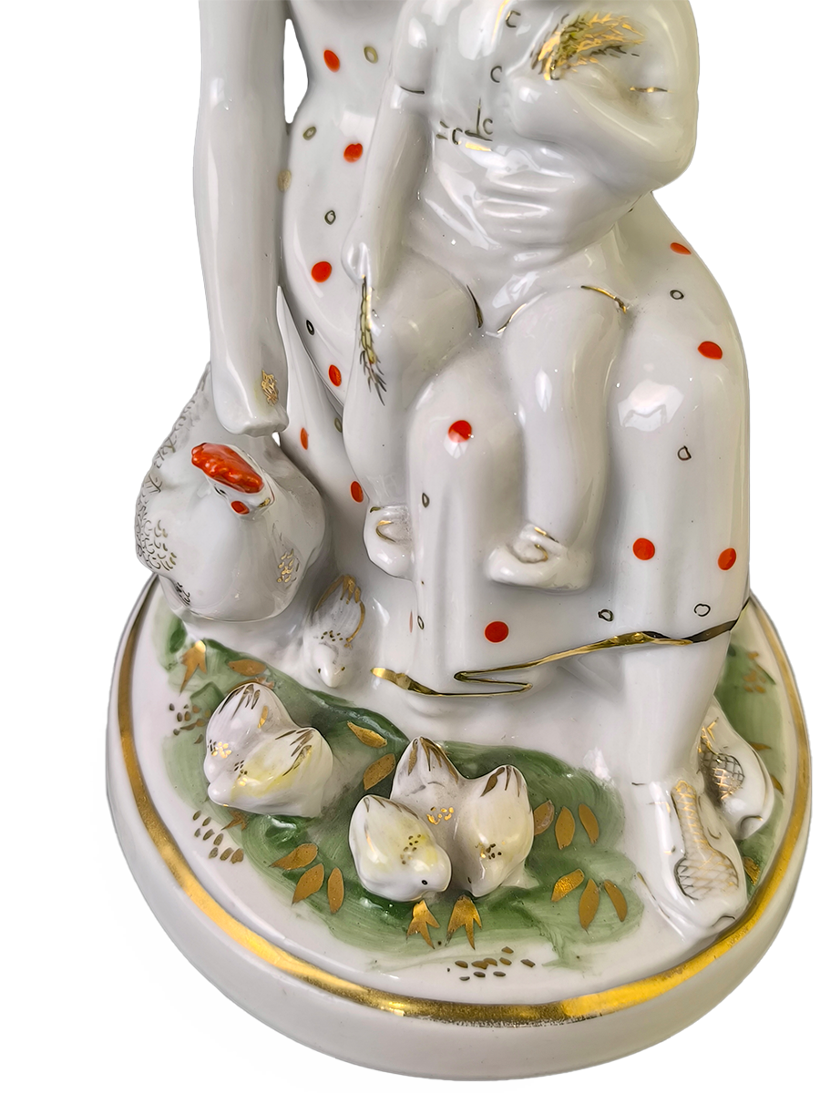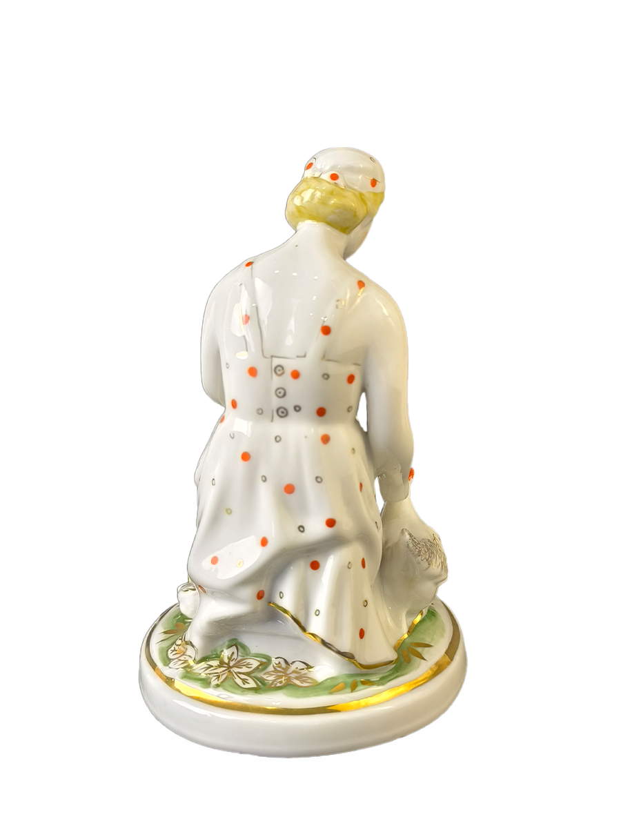 Фарфоровая статуэтка "Мама с ребенком, кормящая кур".