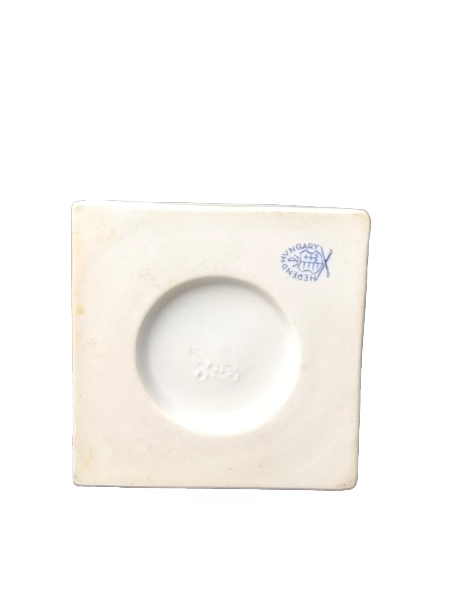 Ручная роспись в натуралистичных цветах с глянцевой глазурью. Статуэтка установлена на характерное квадратное белое основание.