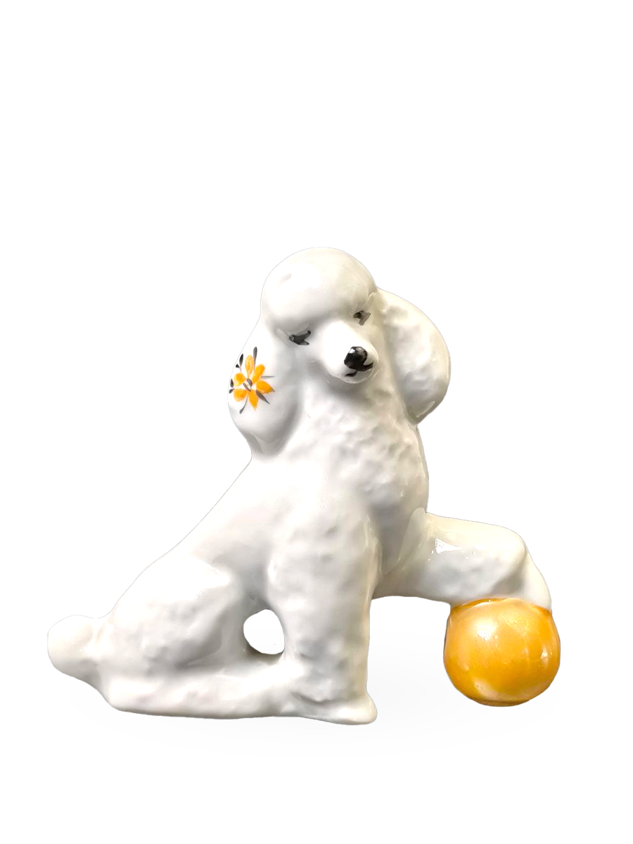 Фарфоровая статуэтка (миниатюра) "Пудель с мячом".