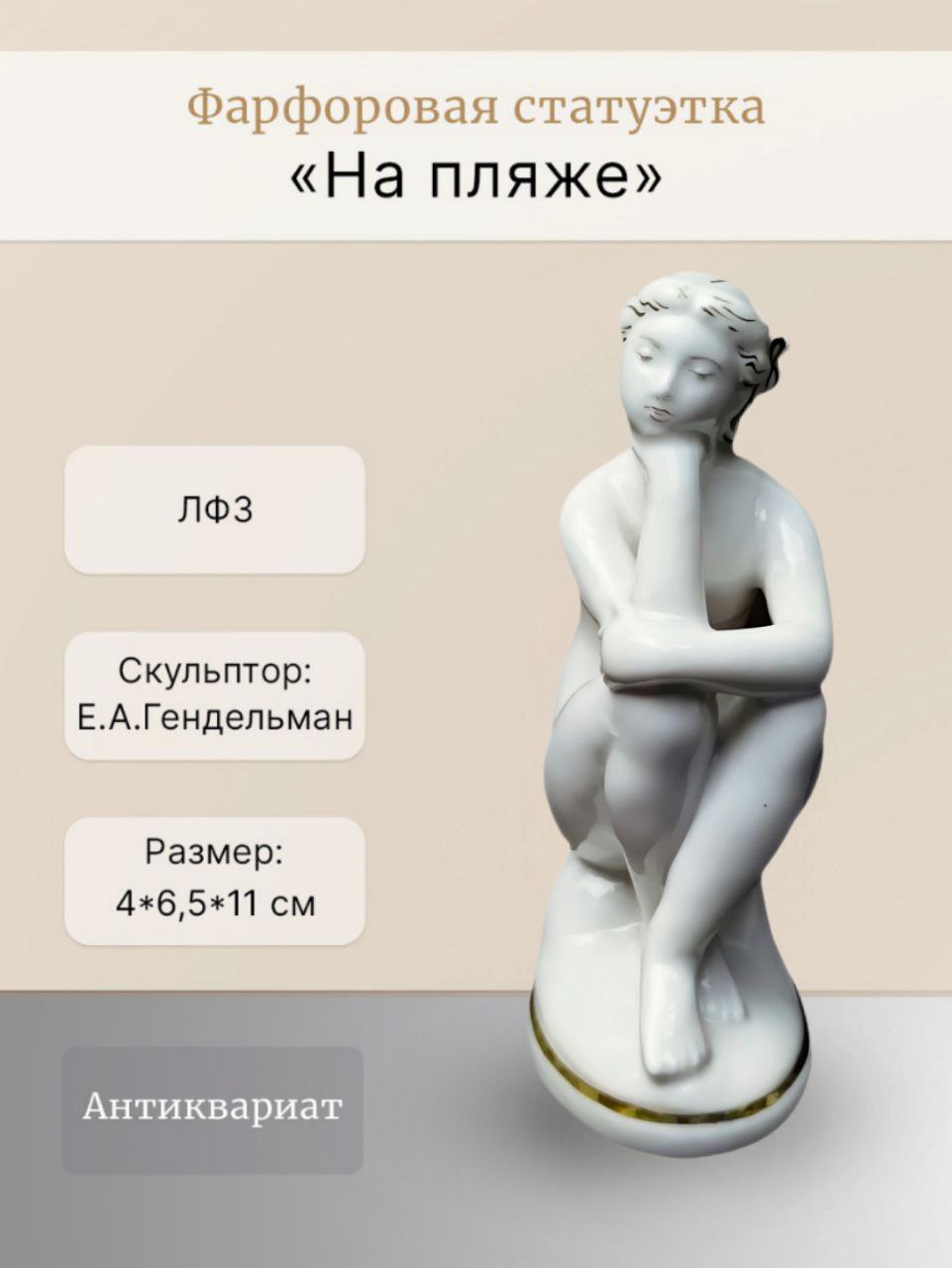 Фарфоровая Статуэтка "На пляже" ЛФЗ – купить за 7 500 ₽ | Антикварный магазин и скупка Морулус Нижний Новгород