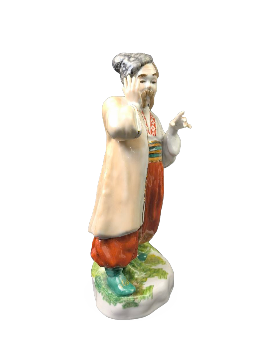 Статуэтка изображает персонажа по имени Карась (Иван Карась), который является главным героем украинской комической оперы XIX века «Запорожец за Дунаем» Семена Гулака-Артемовского.