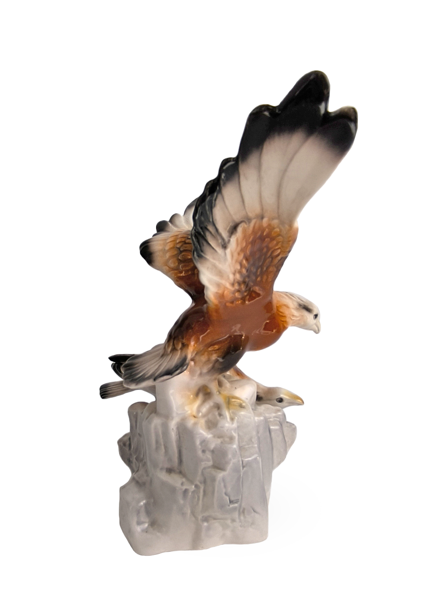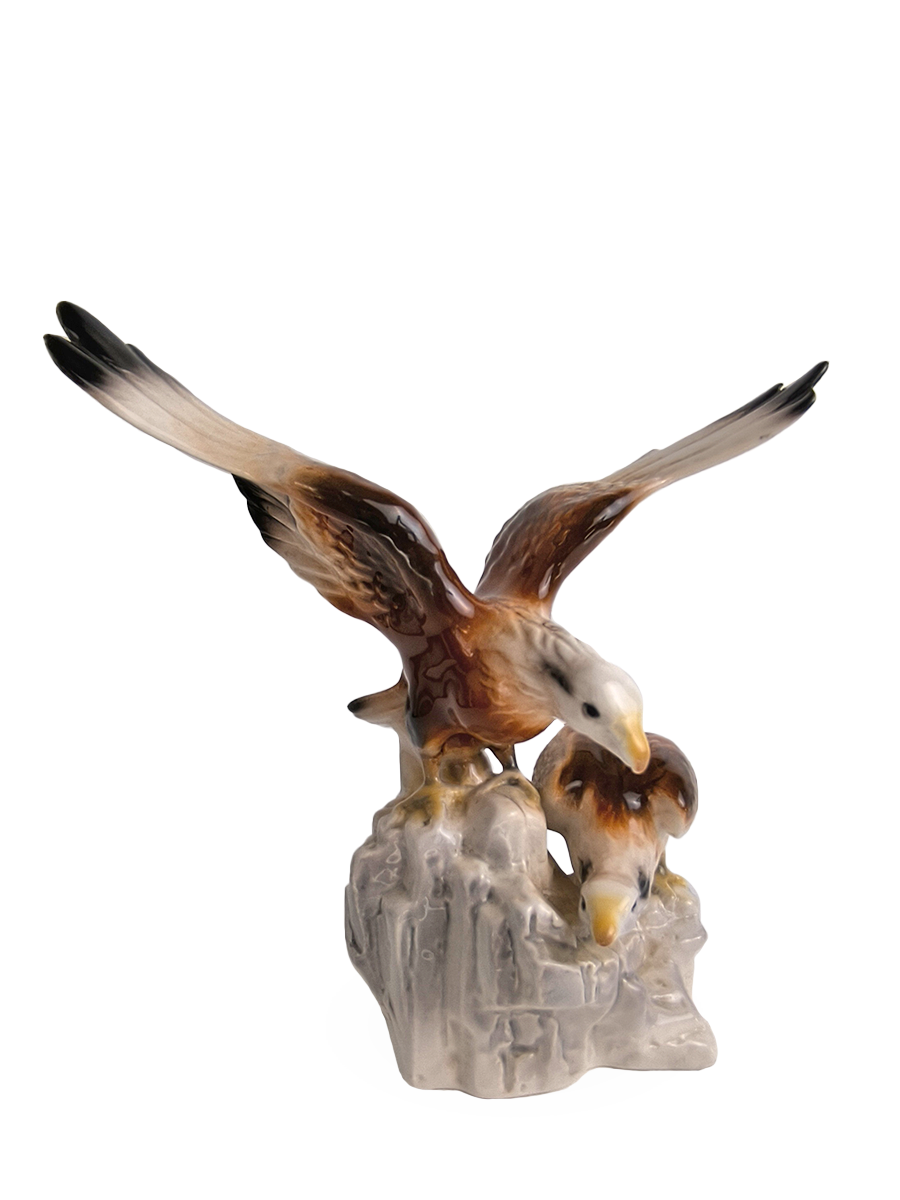 Вашему вниманию представлена винтажная фарфоровая композиция, изображающая двух орлов на скале.