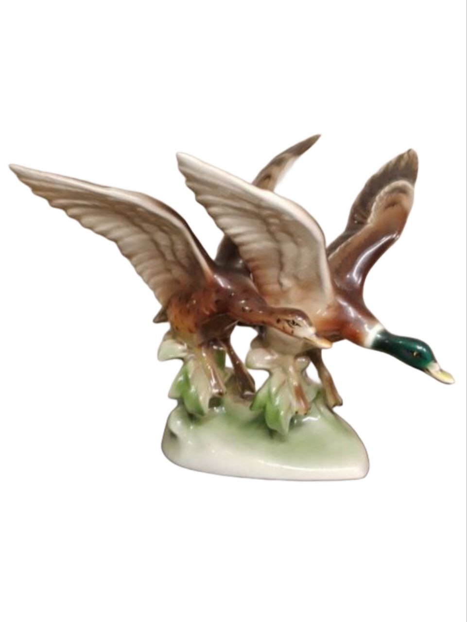 Фарфоровая статуэтка представляет собой композицию из двух взлетающих уток, которые очень похожи на изделия известных европейских мануфактур, таких как Hutschenreuther.
