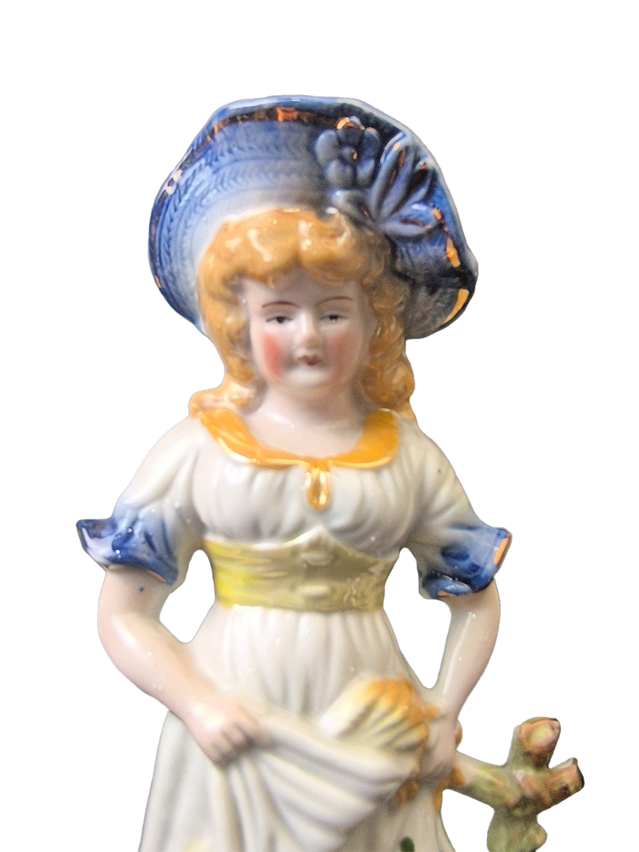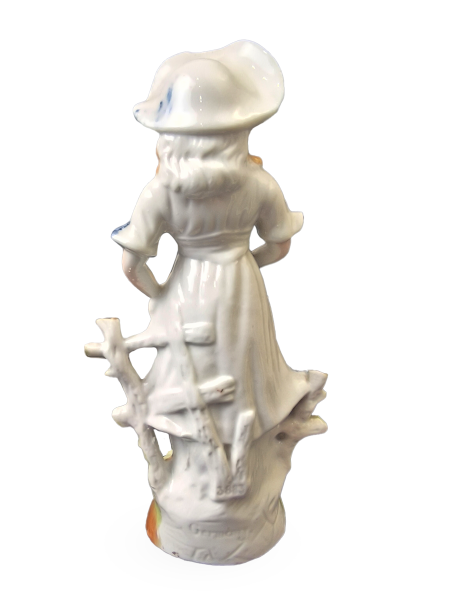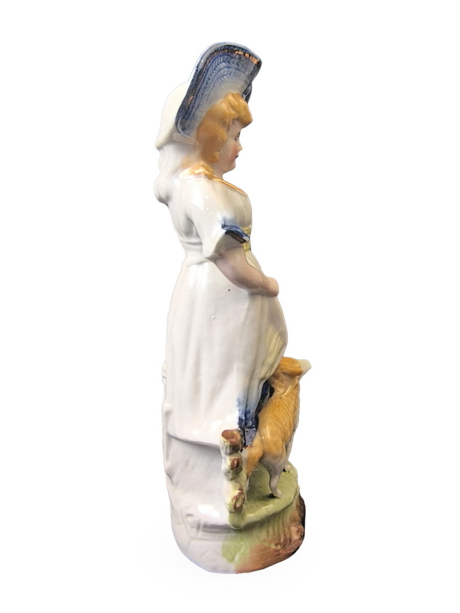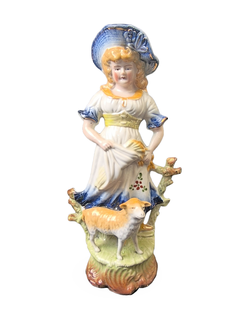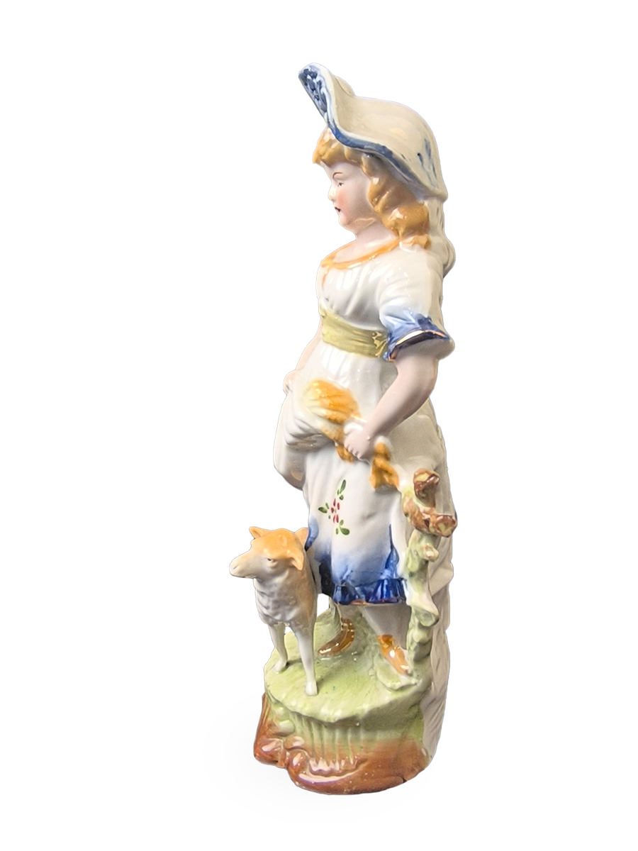 Эта старинная фарфоровая статуэтка пастушка в народном костюме с овечкой.