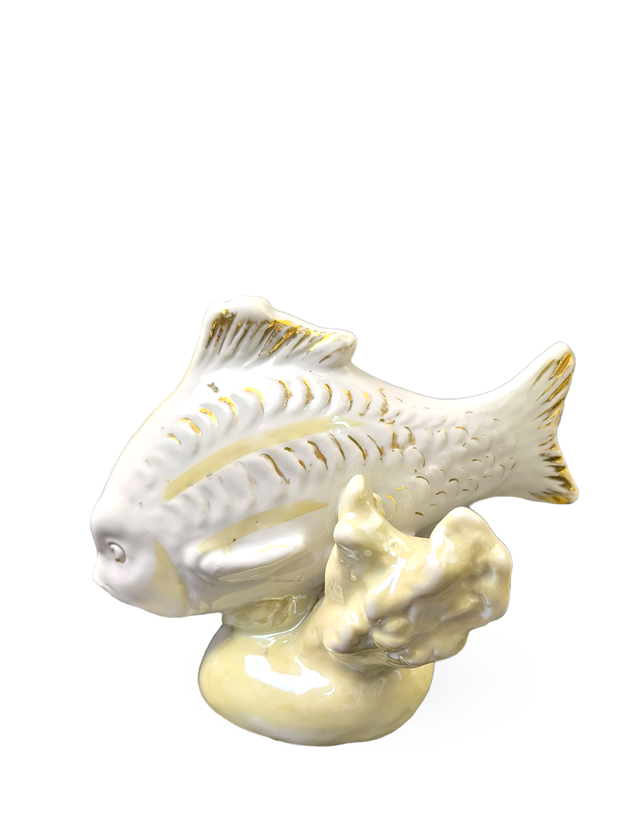 Фарфоровая статуэтка "Рыба - карп", СССР, Дулево, 1954 г. Скульптор П.М. Кожин. Роспись золочение.