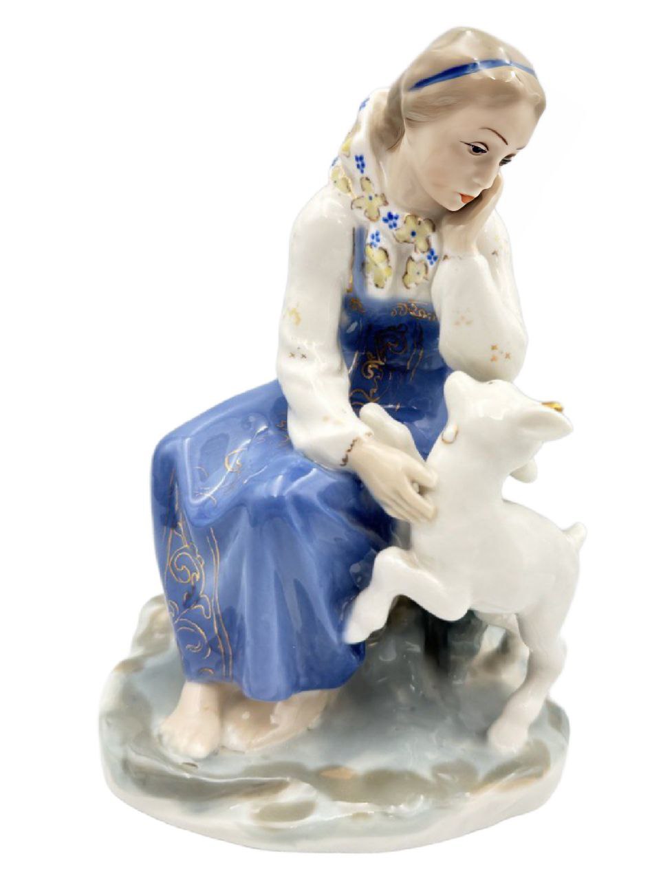 Фарфоровая статуэтка "Сестрица Алёнушка с козлёнком".