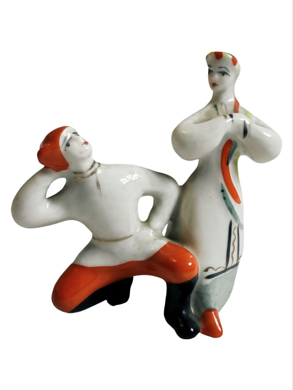 Небольшая фарфоровая статуэтка "Танец Гопачок", "Танец с Красноармейцем" Высота 5,5 см ЗХК Полонне СССР
