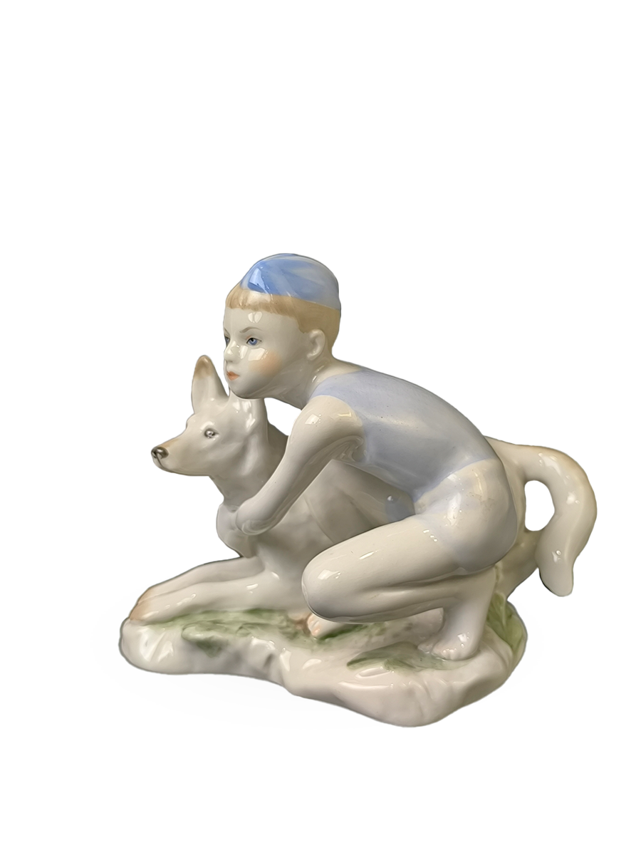 Фарфоровая статуэтка "Юный пограничник с собакой" ЛФЗ