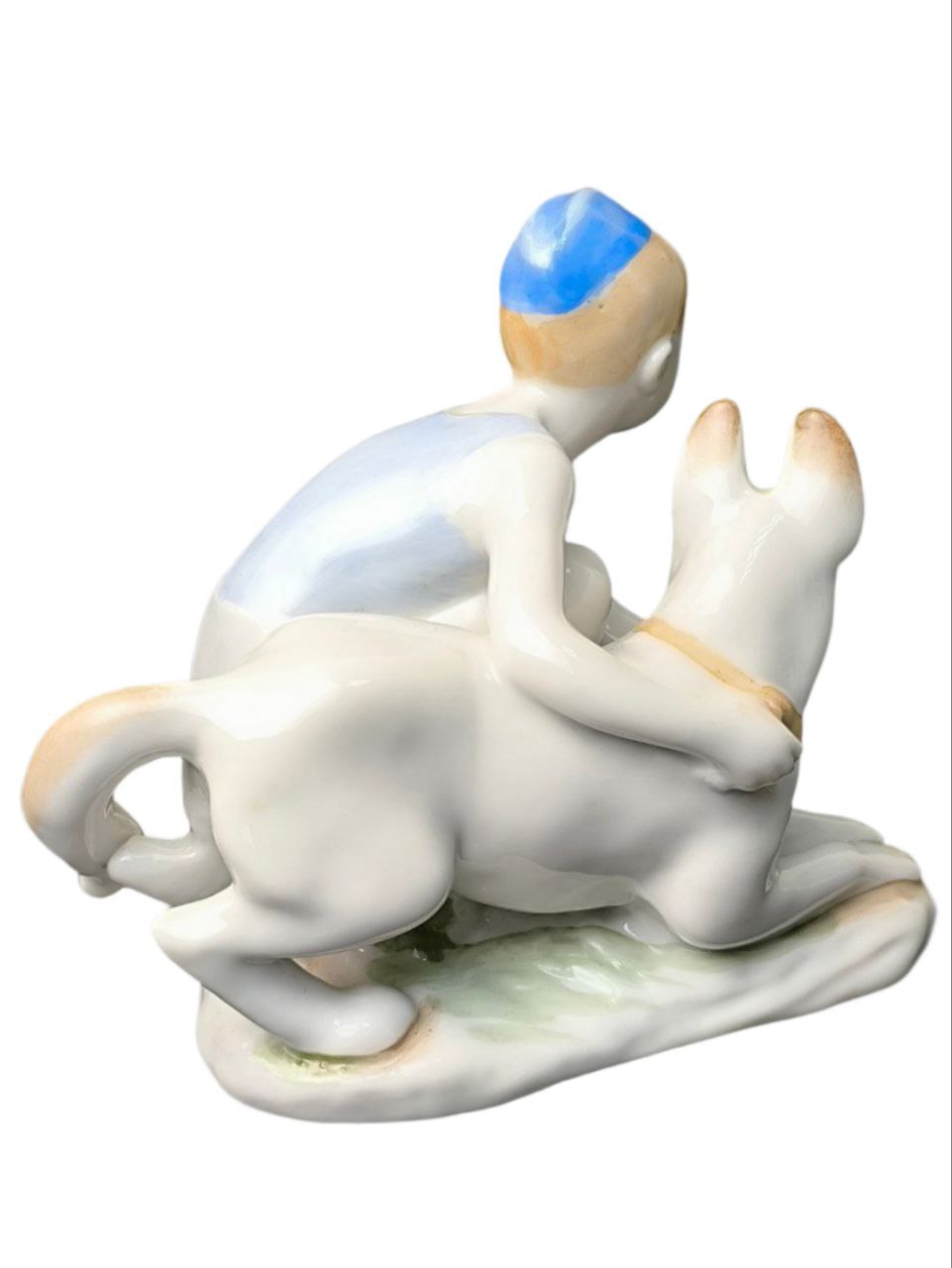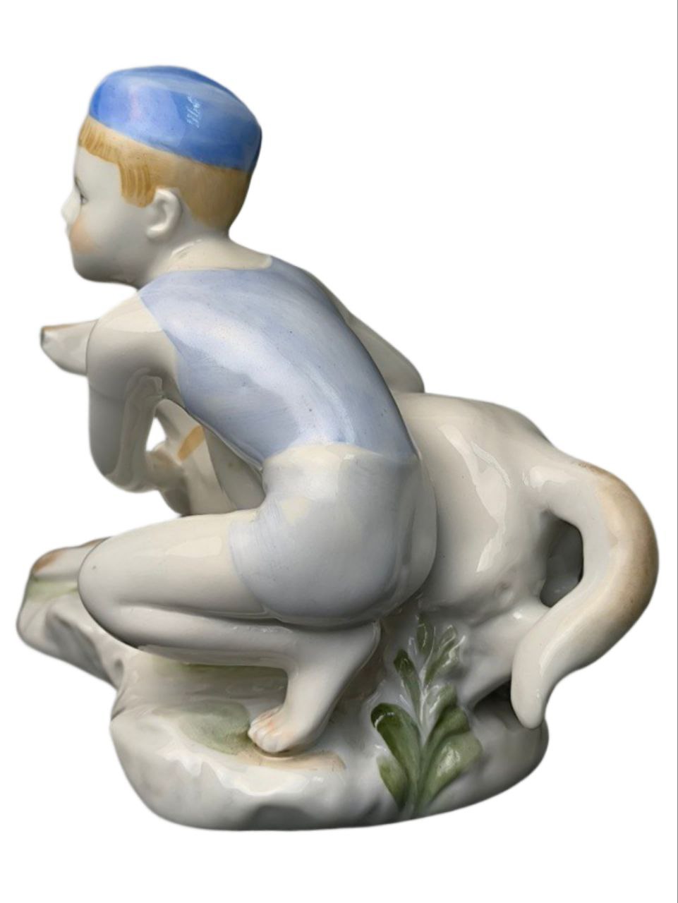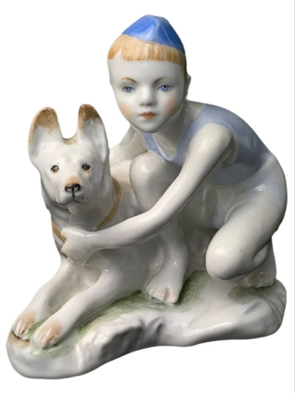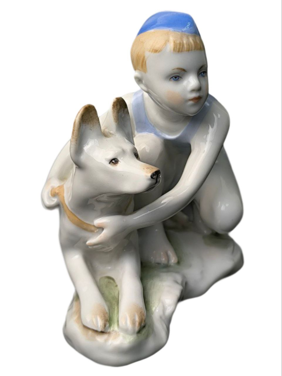 Фарфоровая статуэтка "Юный пограничник с собакой".