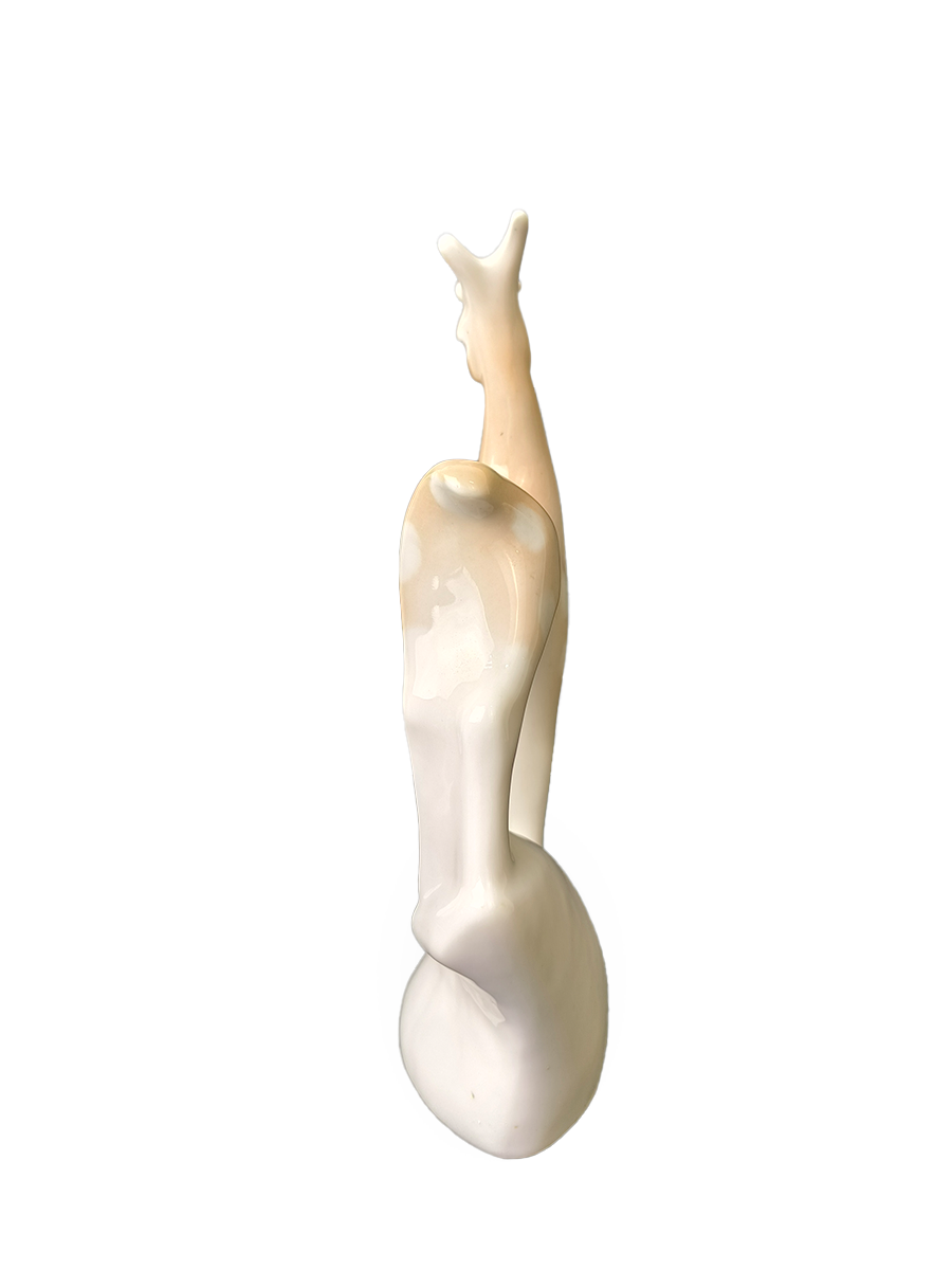 Фарфор, с глазурью кремового или светло-коричневого оттенка и белыми пятнами. Минский фарфорово-фаянсовый завод (МФЗ), СССР, 1968-1983 гг.