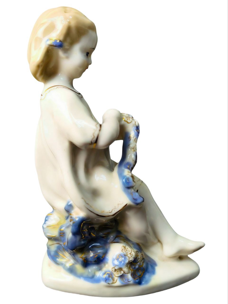 Фаянсовая статуэтка "Девочка с венком", "Девочка, плетущая венок".