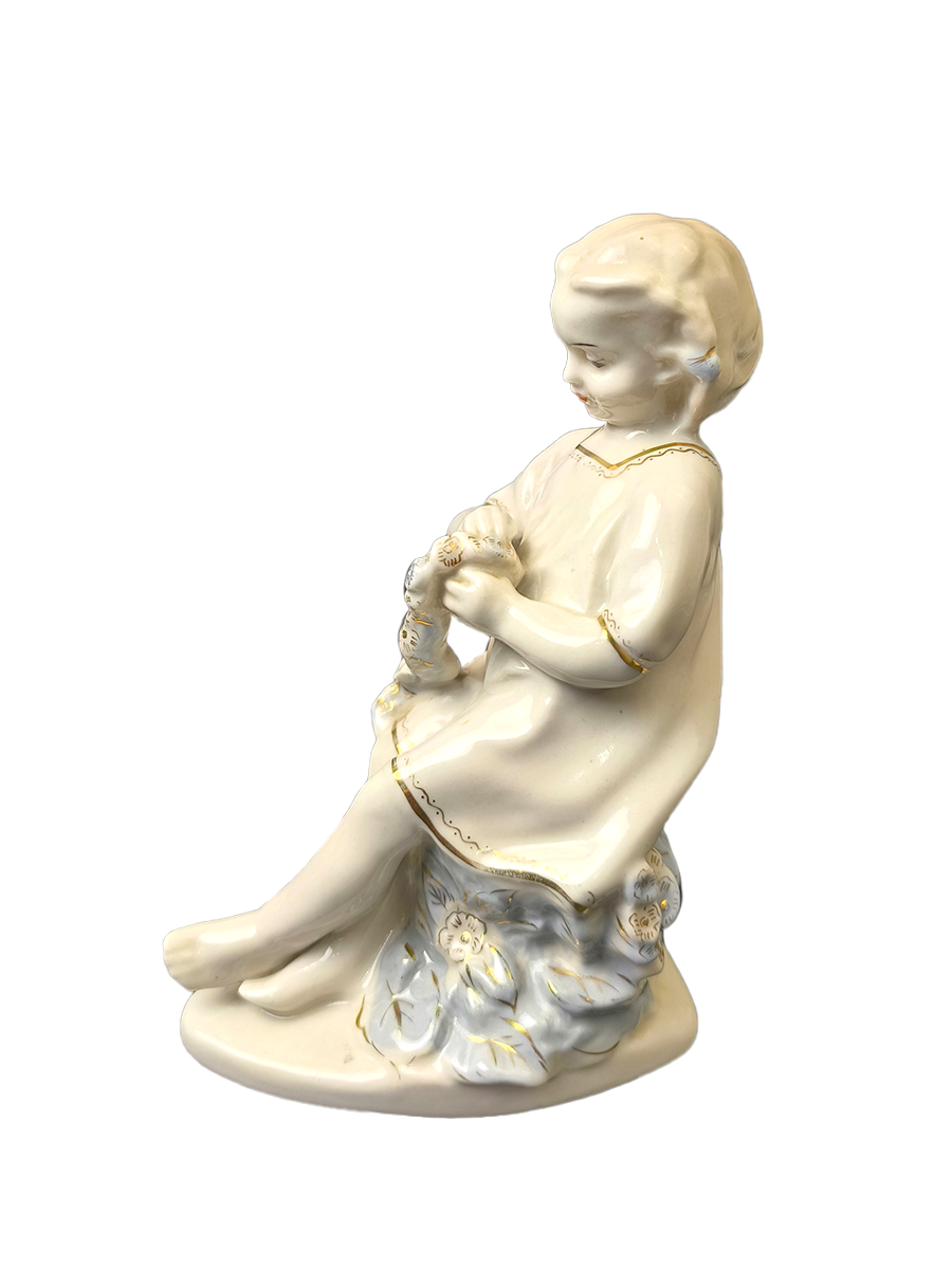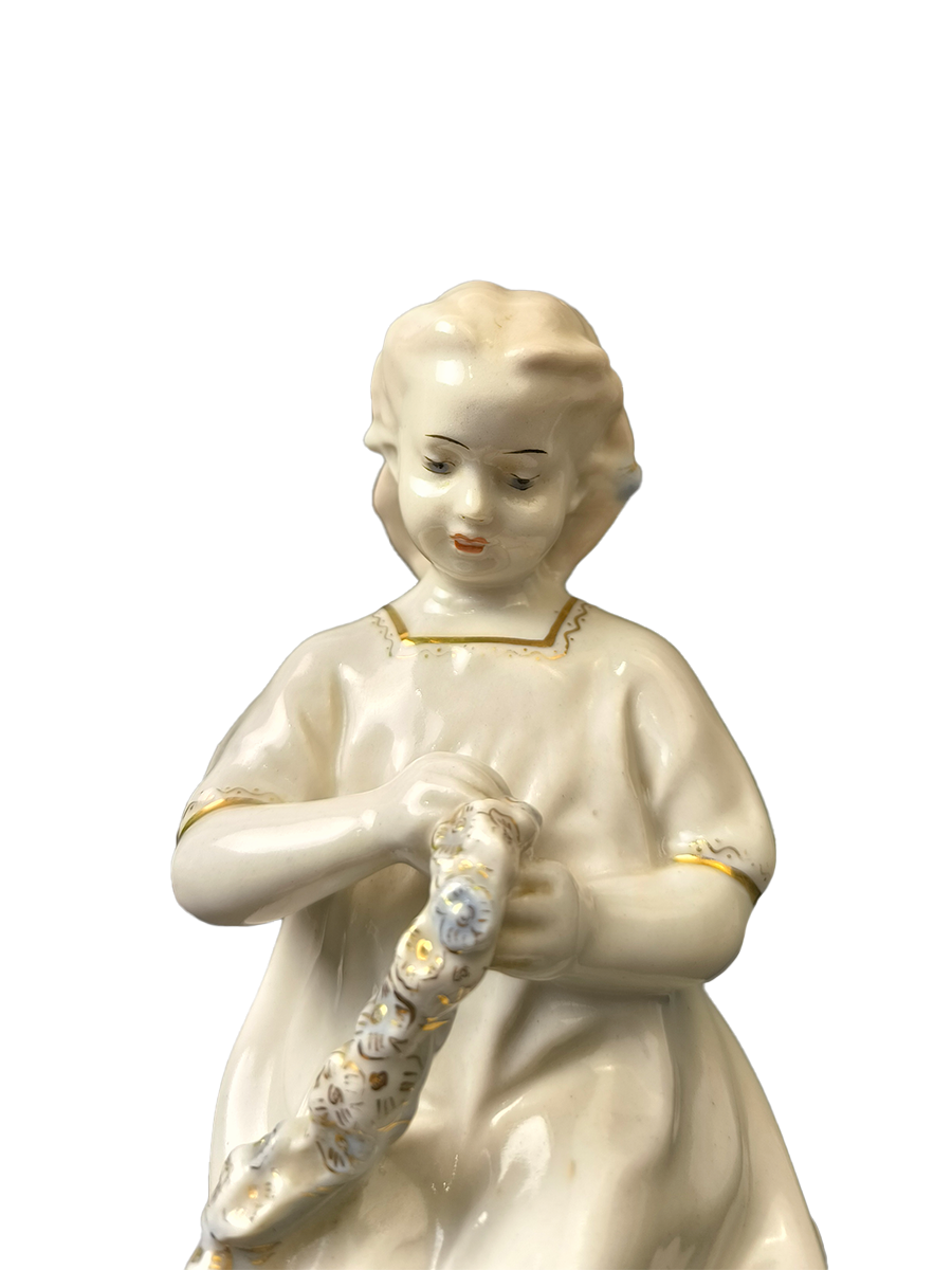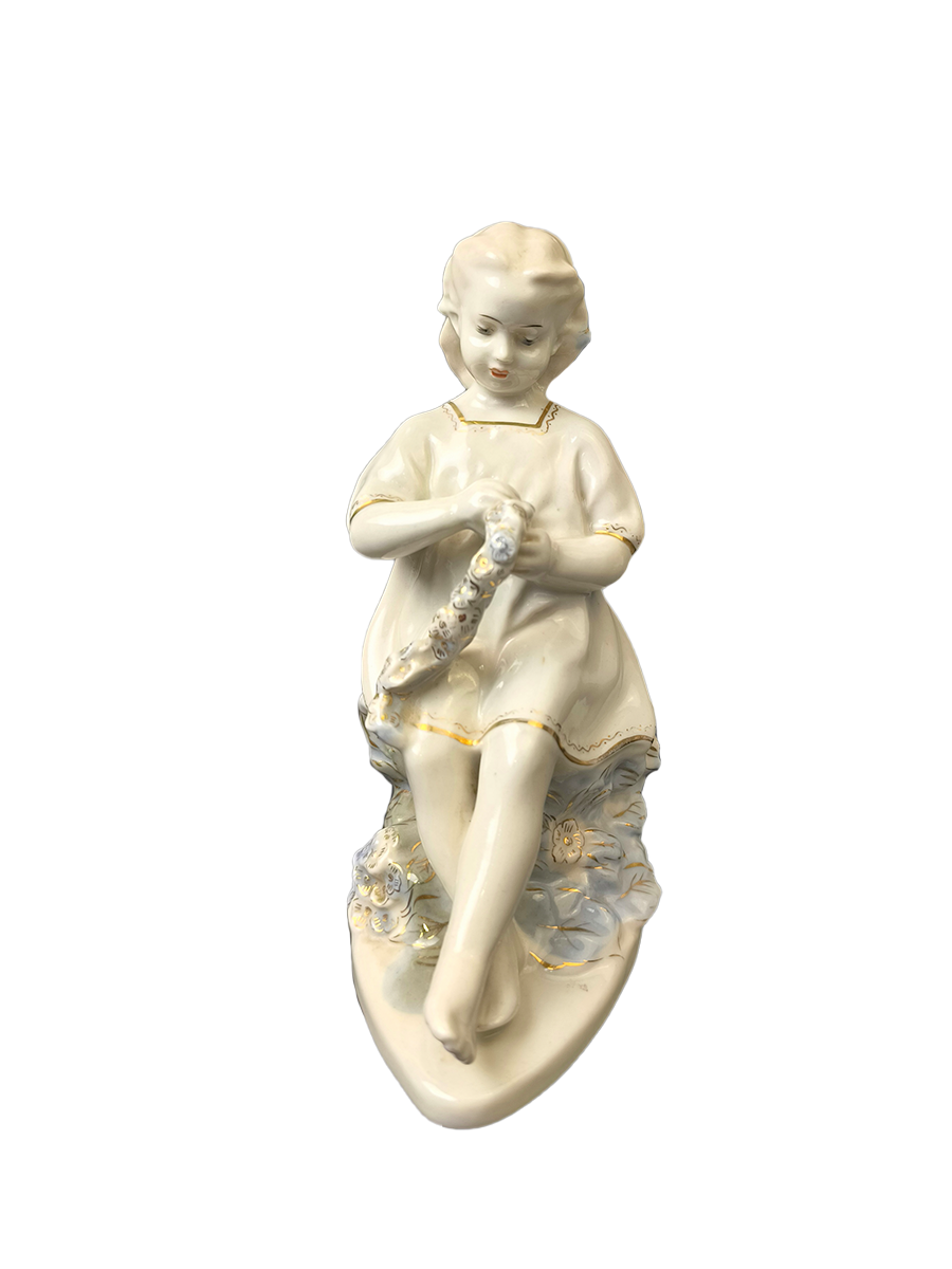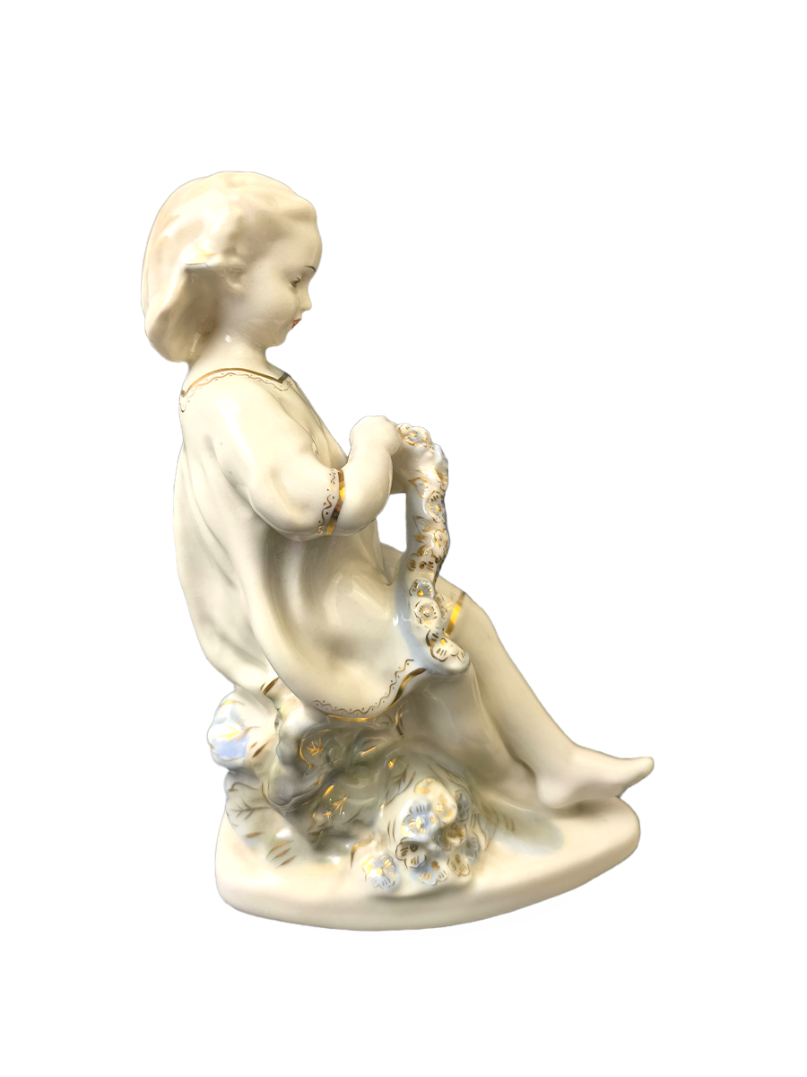 Фаянсовая статуэтка "Девочка с венком", "Девочка, плетущая венок".