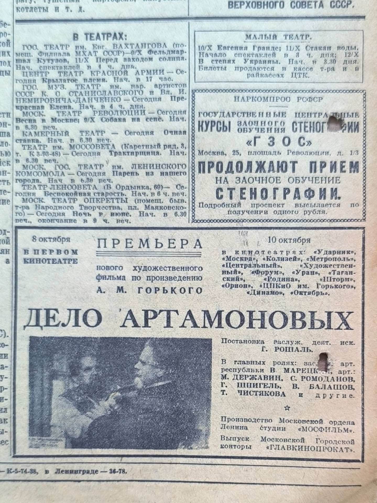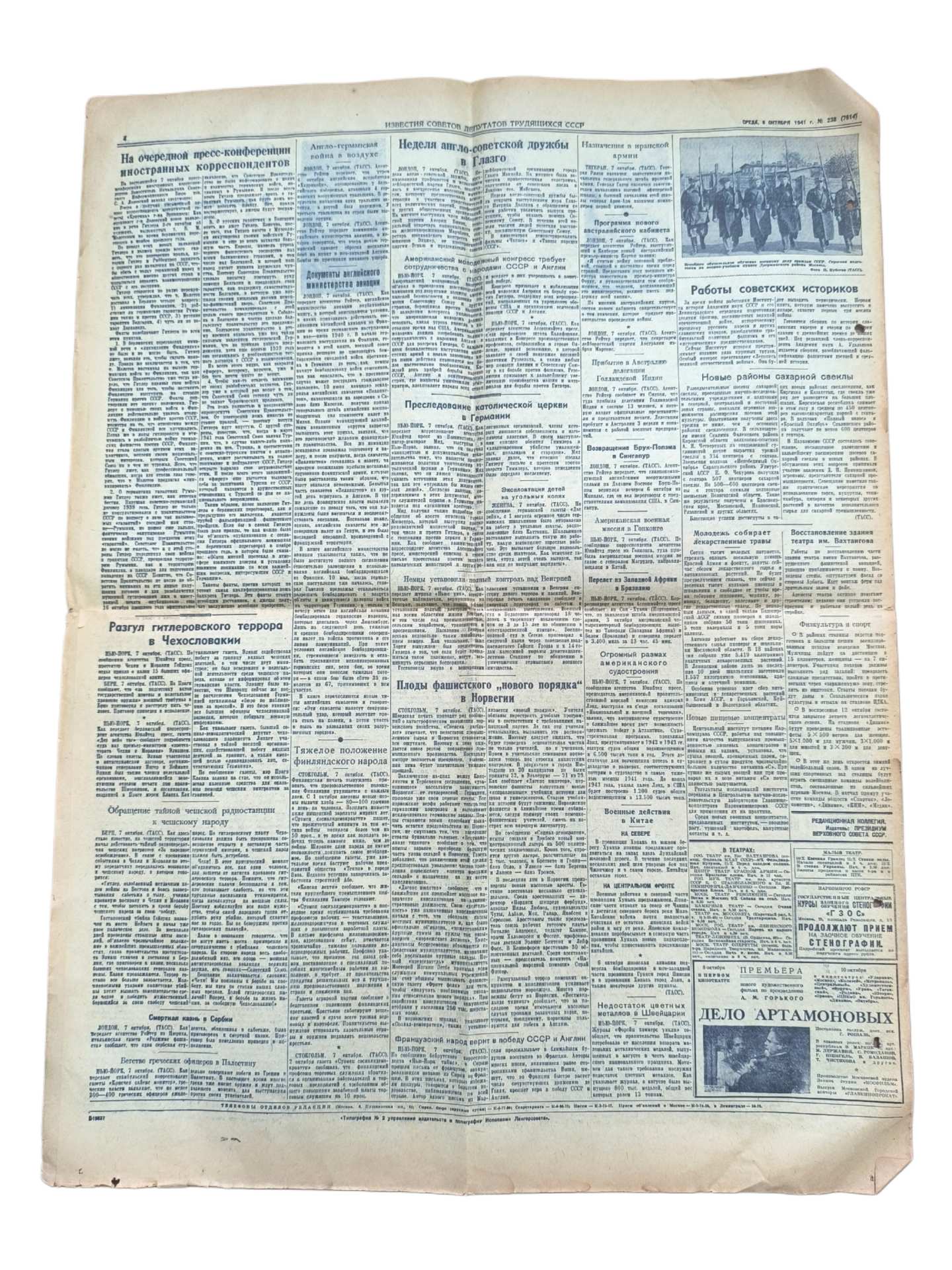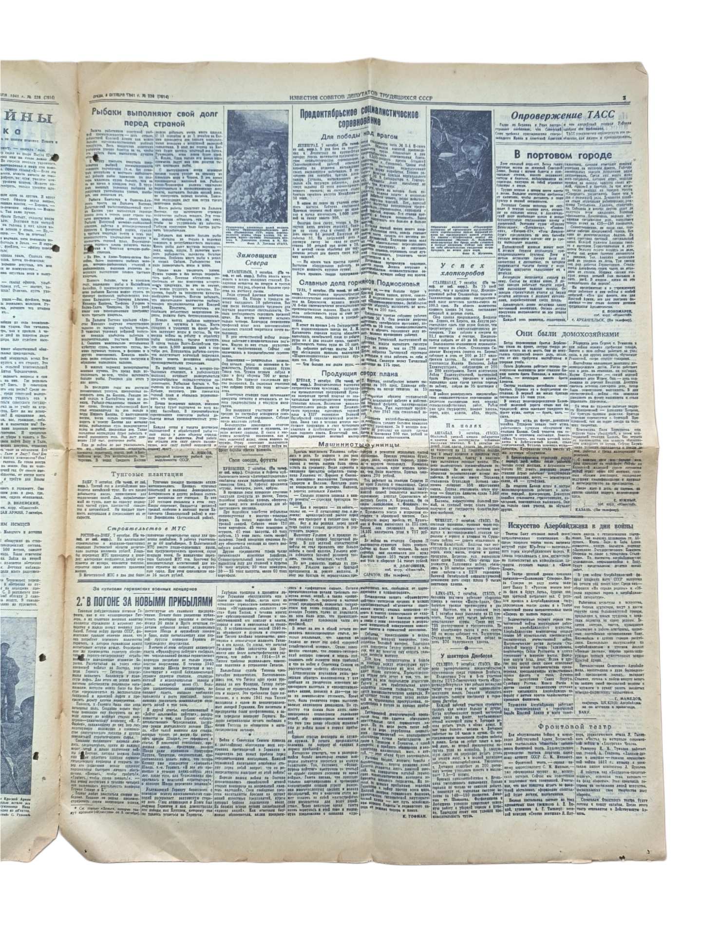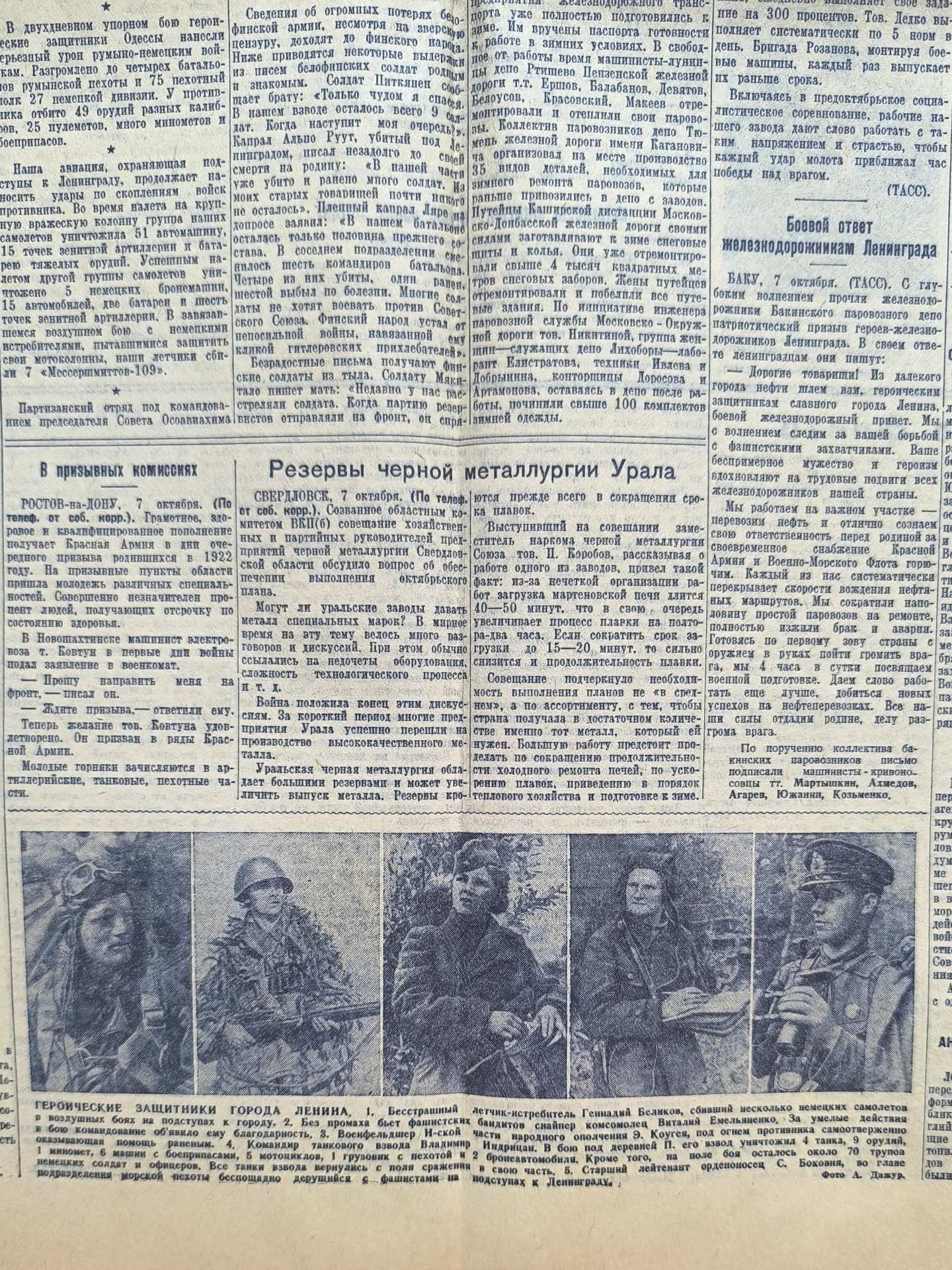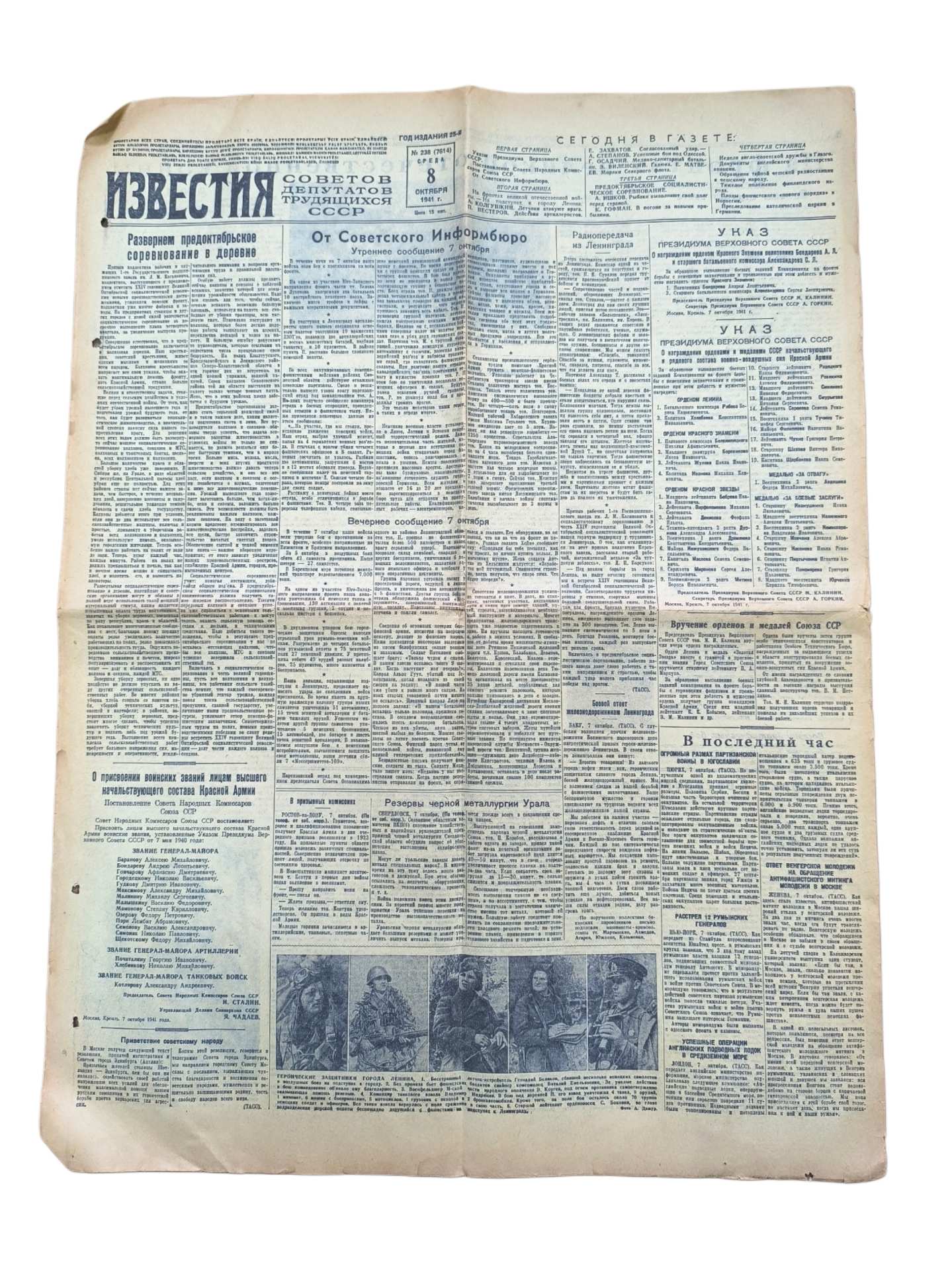 Газета военного времени "Известия". 8 октября 1941 года.