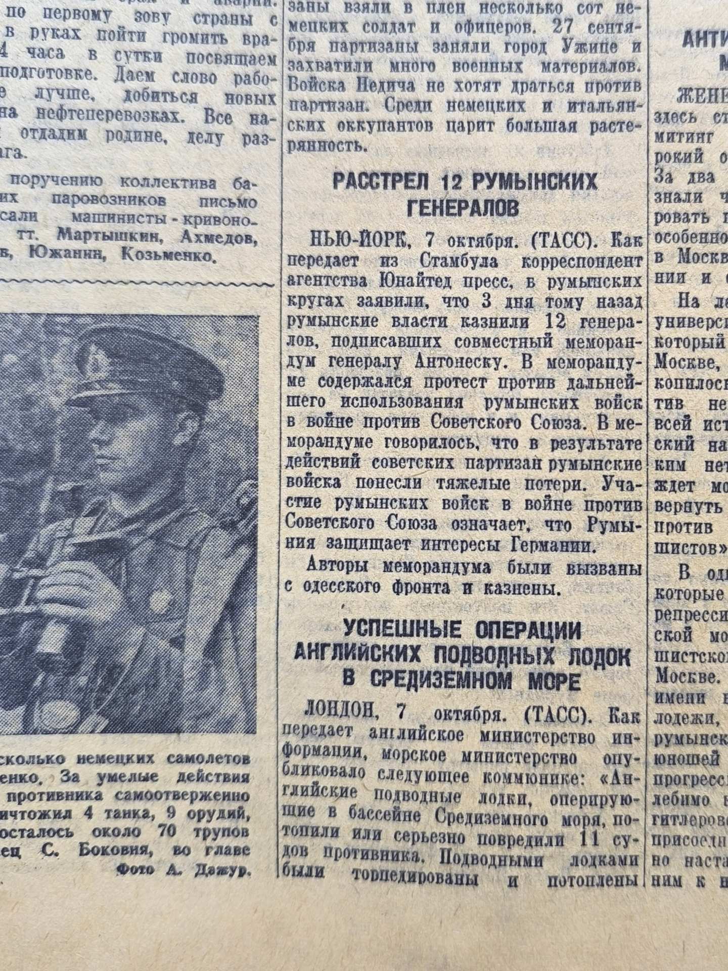 "Развернём предоктябрьское соревнование в деревне"; " погоне за новыми прибылями"; "Моряки северного флота"; "Расстрел 12 румынских генералов".