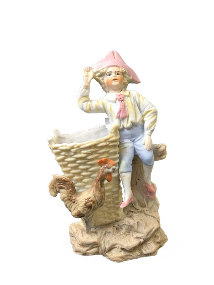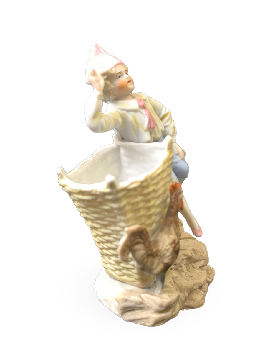 Фарфоровая карандашница (статуэтка) "Мальчик с петухом" или "Вазочка (карандашница) в виде плетёной корзинки с фигурой мальчика" Германия