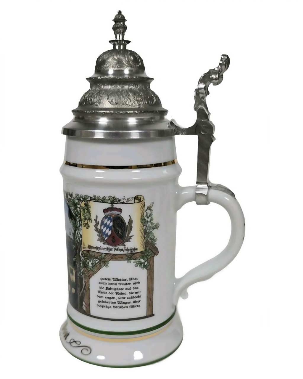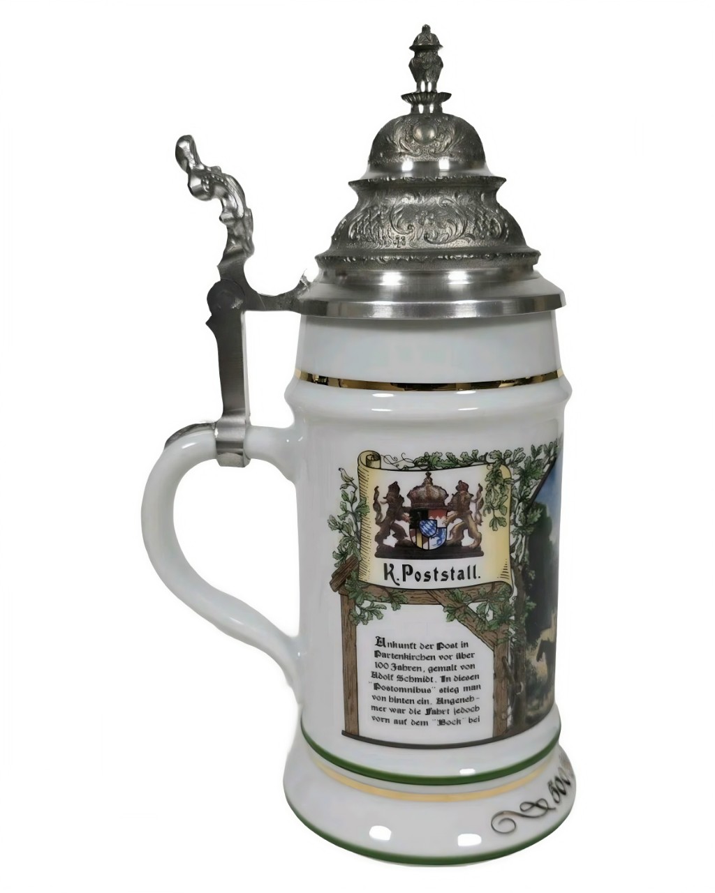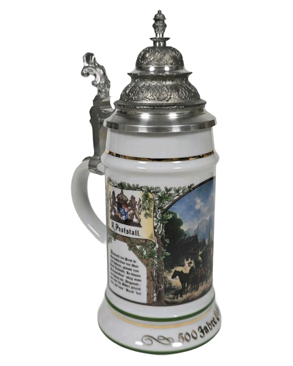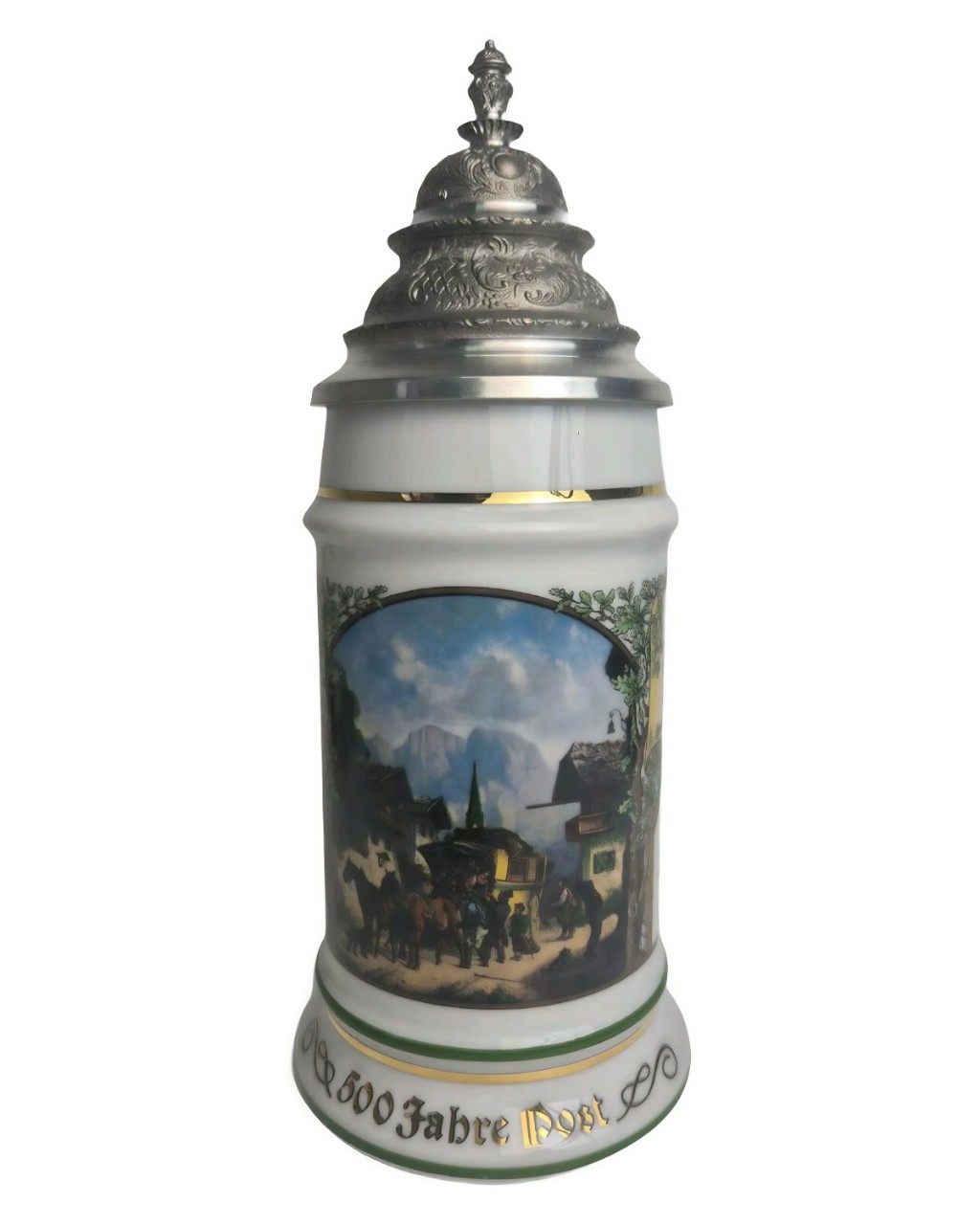 Эта коллекционная пивная кружка с крышкой посвящена 500-летию Почты Германии. Является частью серии из нескольких мотивов (обычно четырех), посвященных истории почты (500 лет почты).