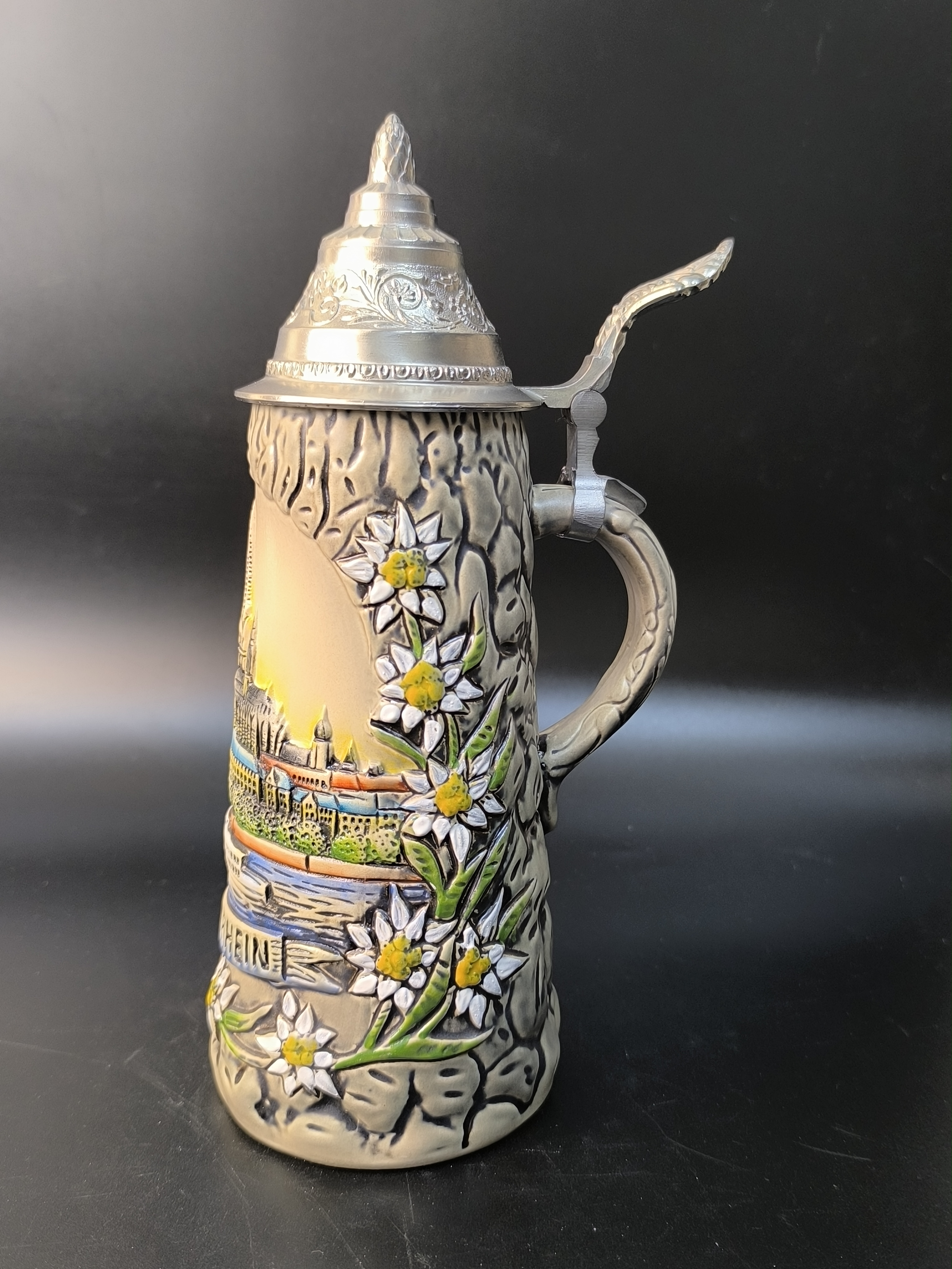 Кружка пивная (фарфор с оловянной крышкой) Германия.