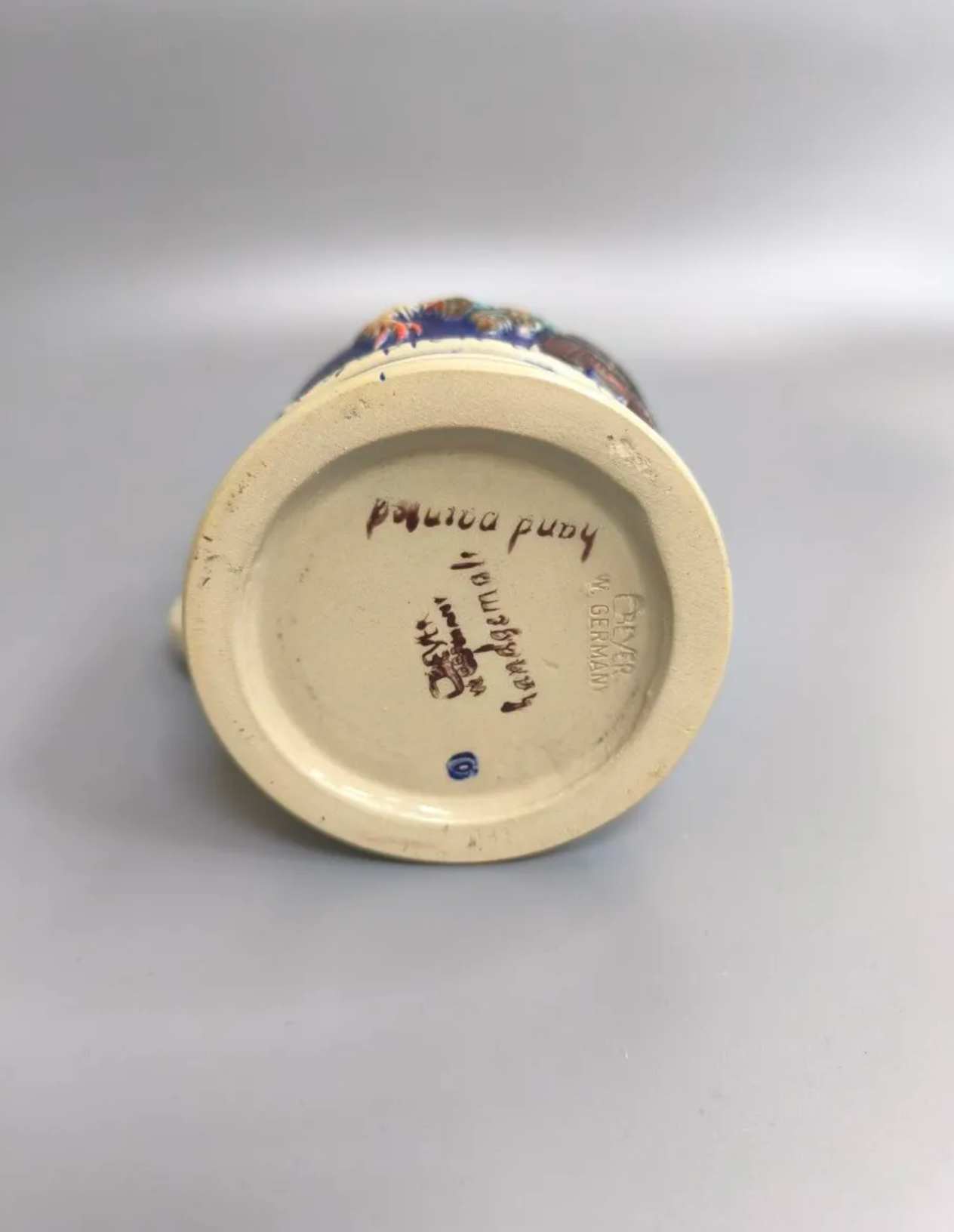 Описание: Пузатая кружка из керамики в глазури с оловянной крышкой Отличное состояние без недостатков. На кружке герб пивоварни. Великолепный объемный рисунок. на крышке гравировка к юбилею 60 лет.
