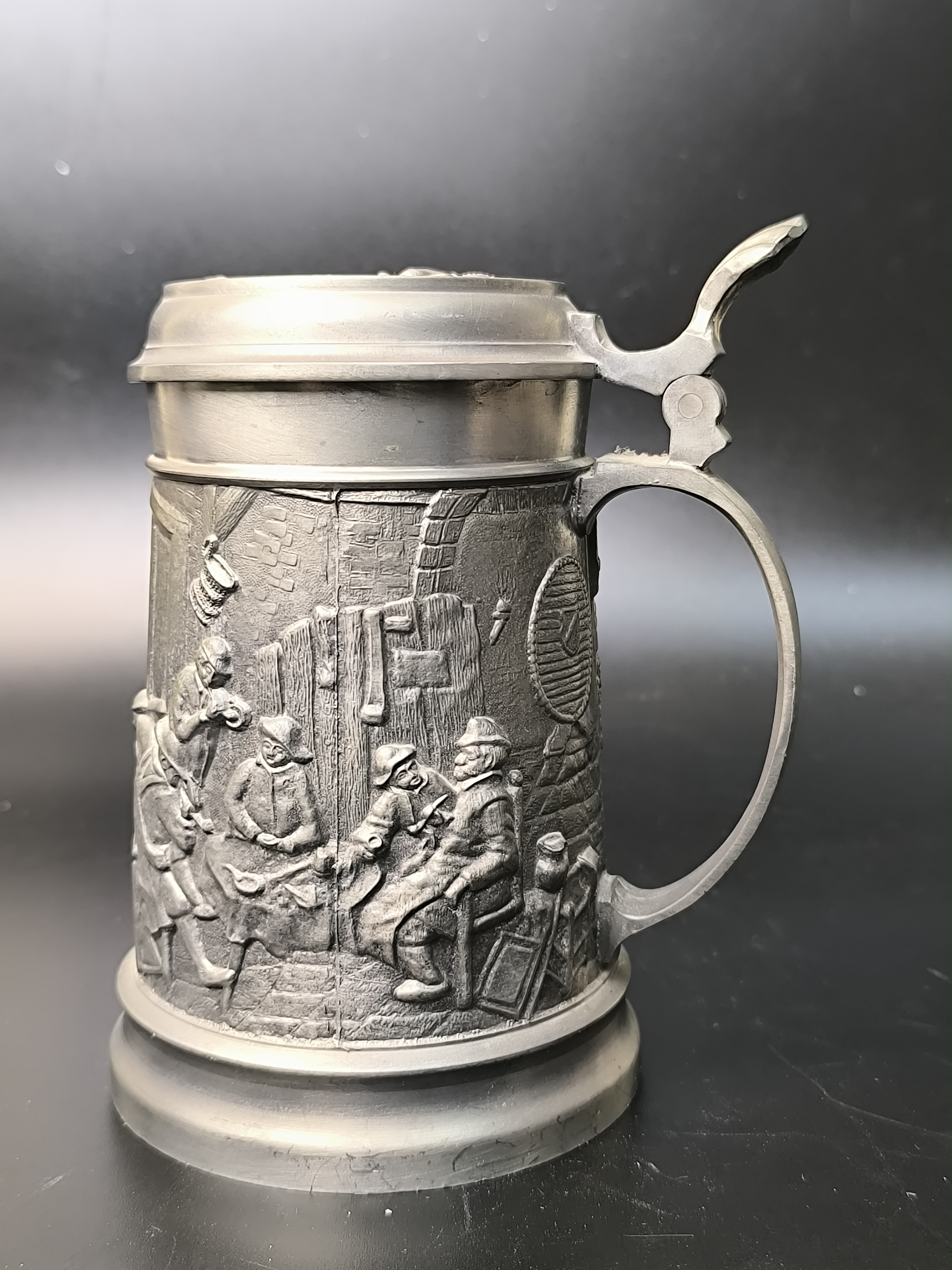 Пивная кружка с крышкой "В таверне" Три сюжета. Германия.
