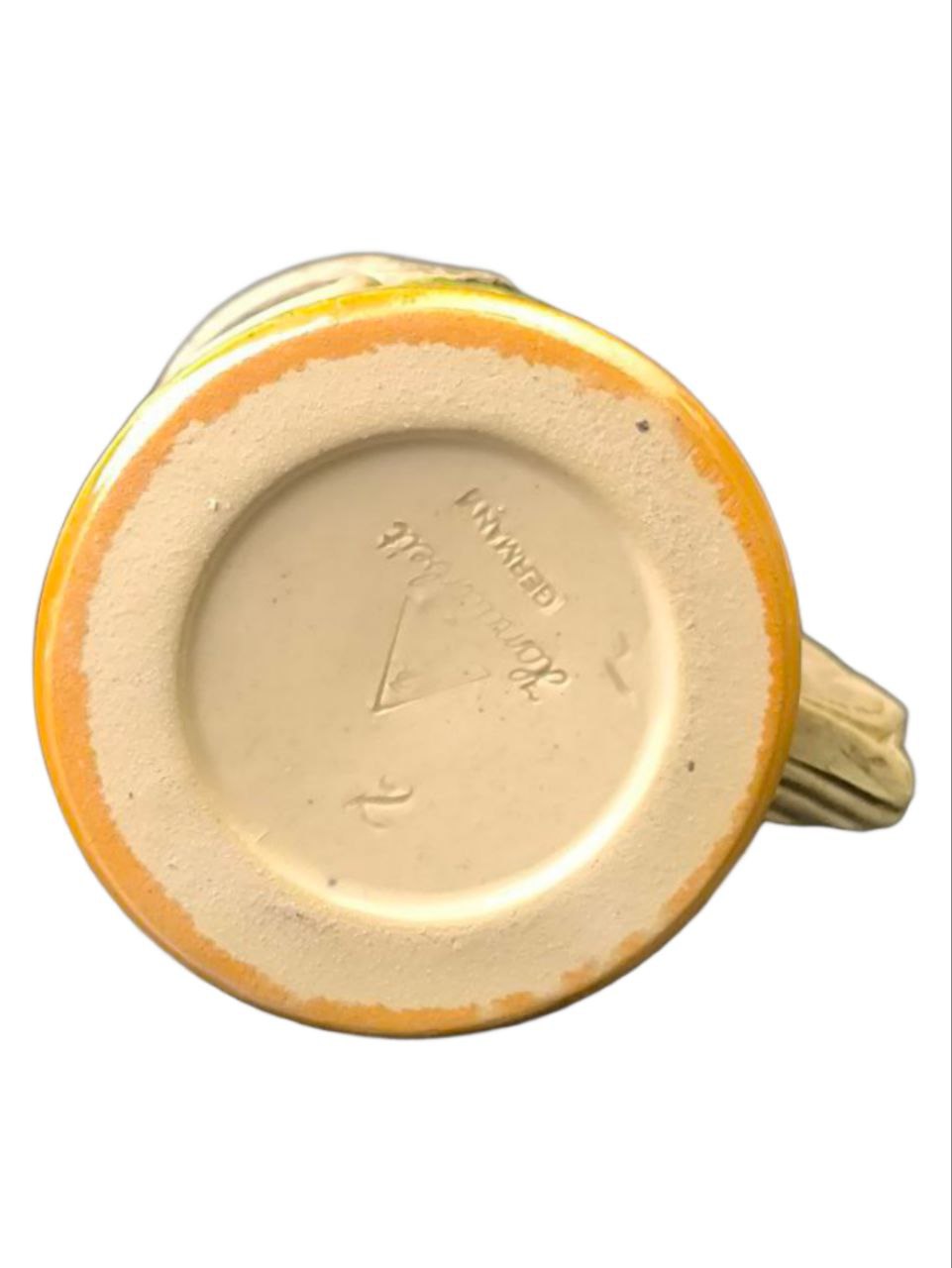 Кружка изготовлена из фарфора, украшена декором и оловянной крышкой. Кружка украшена рельефными и раскрашенными изображениями достопримечательностей Люксембурга.