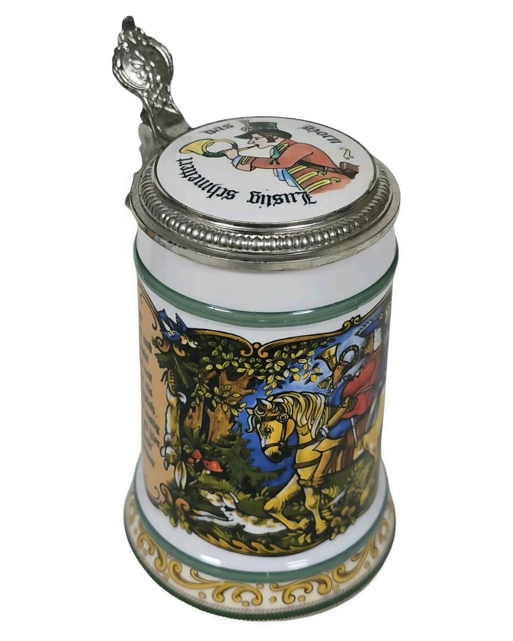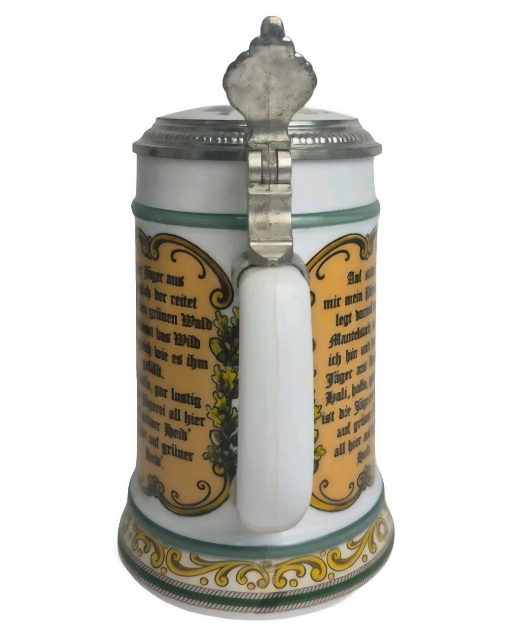 На кружке изображена сцена охоты — всадник-охотник с рогом (часто идентифицируется как «Охотник из Пфальца» по мотивам немецкой народной песни XVIII века).