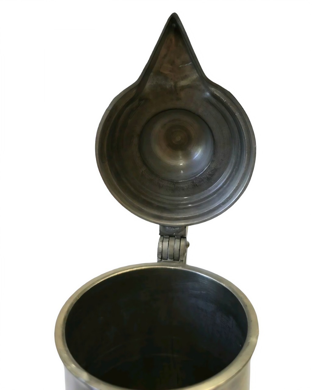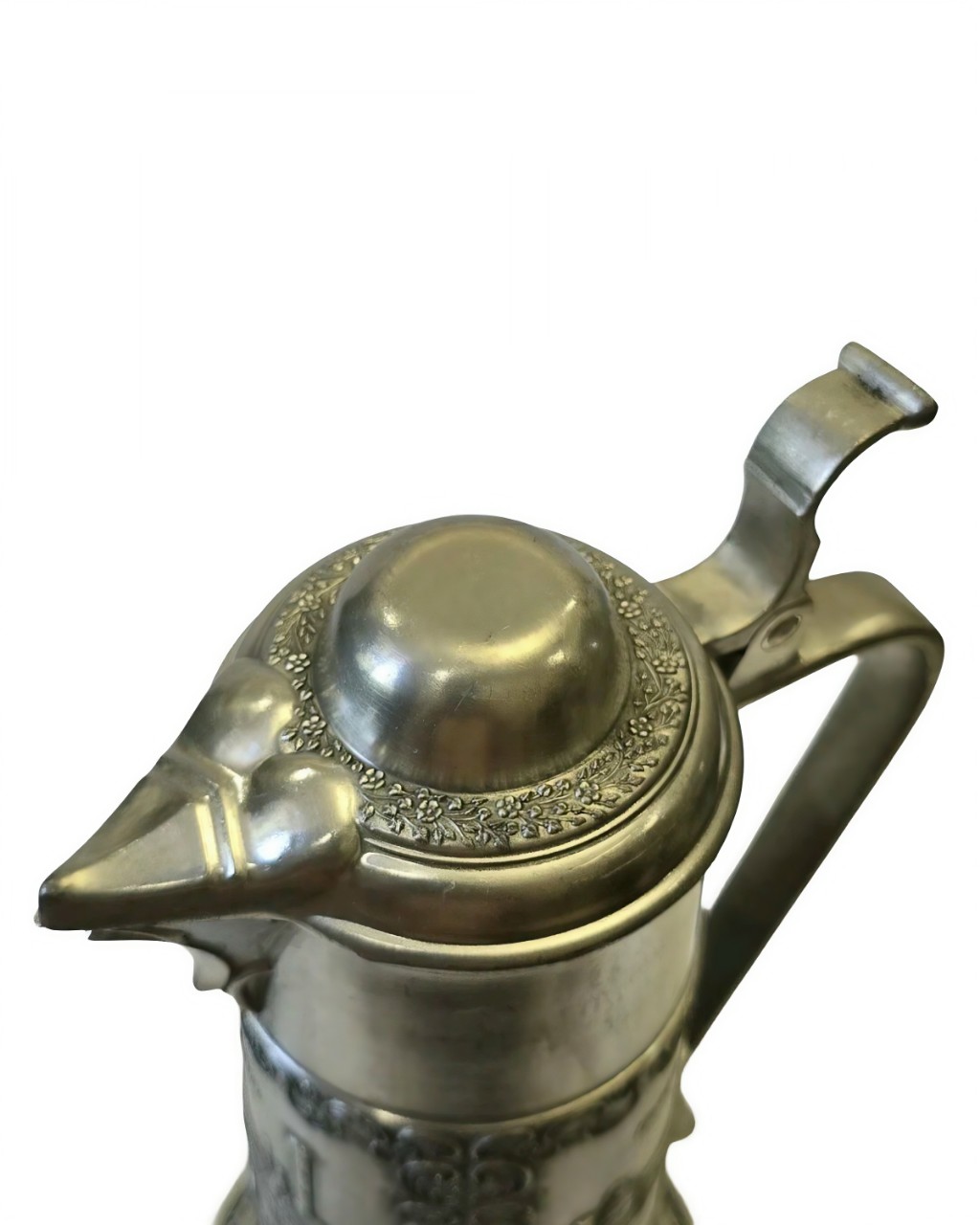 Этот предмет представляет собой коллекционный оловянный кувшин (или высокую пивную кружку — танкард) с откидной крышкой, изготовленный в Германии.