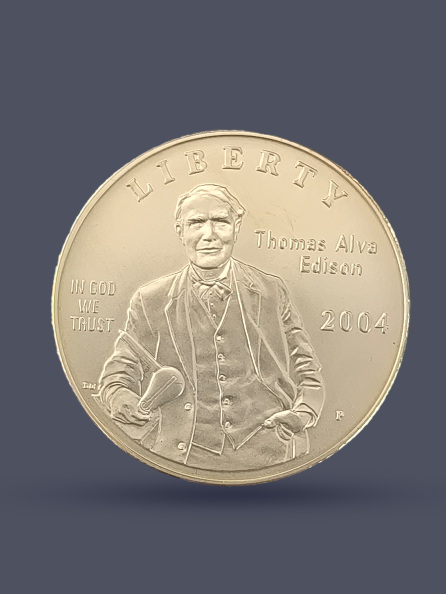 Подлинная серебряная монета США достоинством 1 доллар 2004 год.