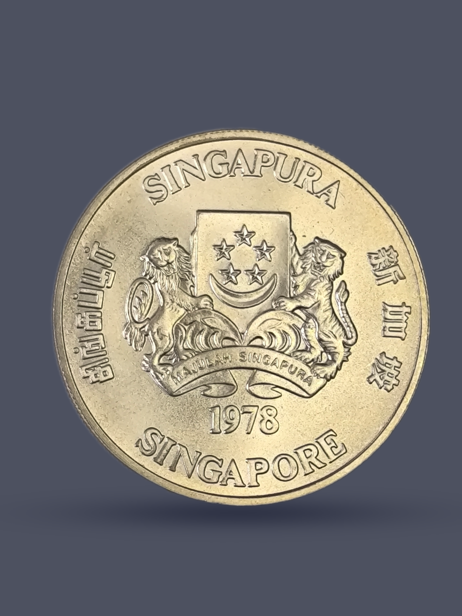 Подлинная серебряная монета Сингапура достоинством 10 долларов (dollars) 1978 год.