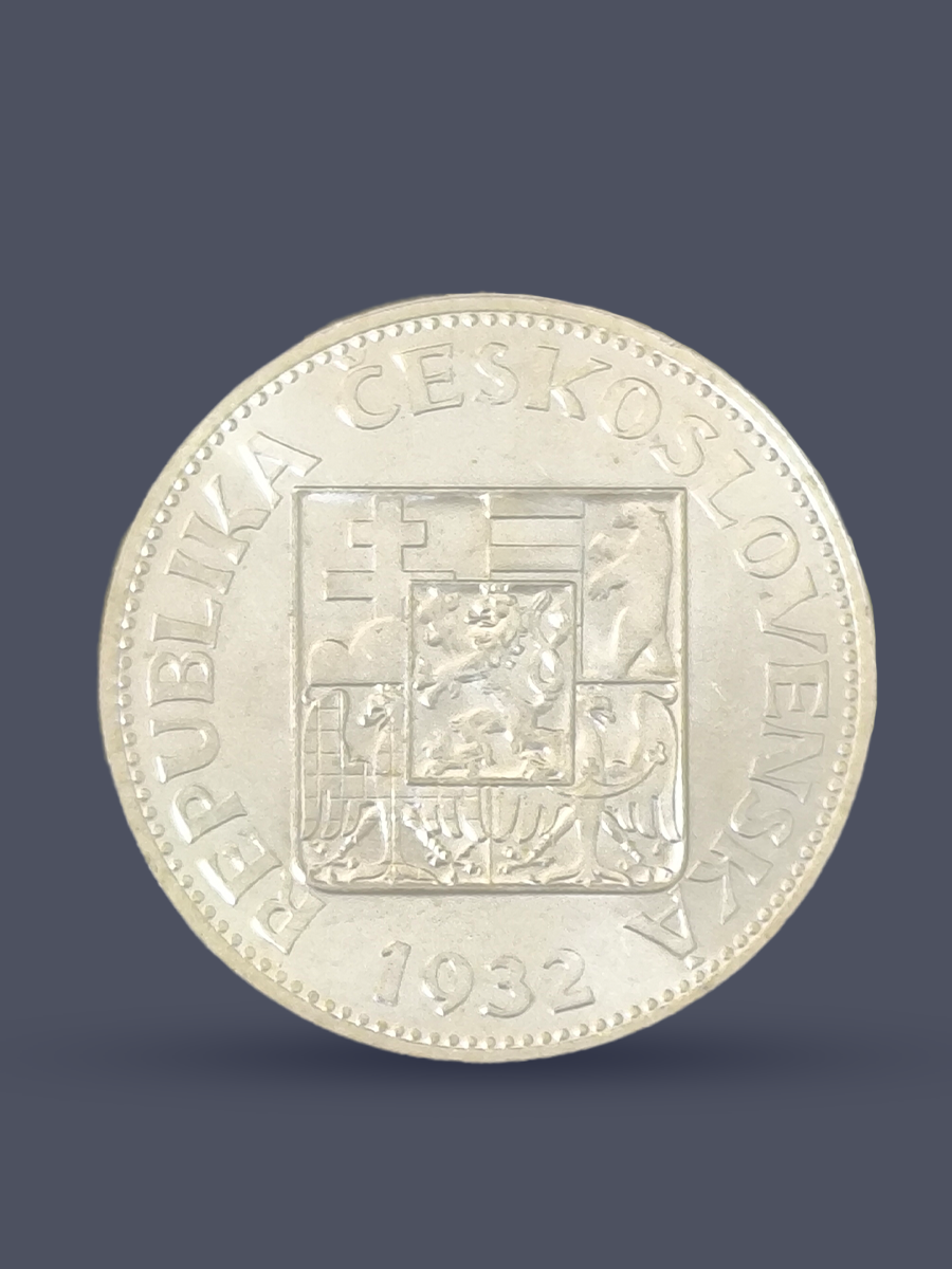 Подлинная серебряная монета Чехословакии достоинством 10 крон (korun) 1932 год.