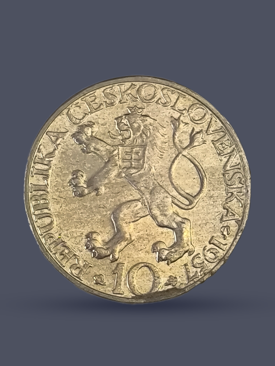 Подлинная серебряная монета Чехословакии достоинством 10 крон (korun) 1957 год.