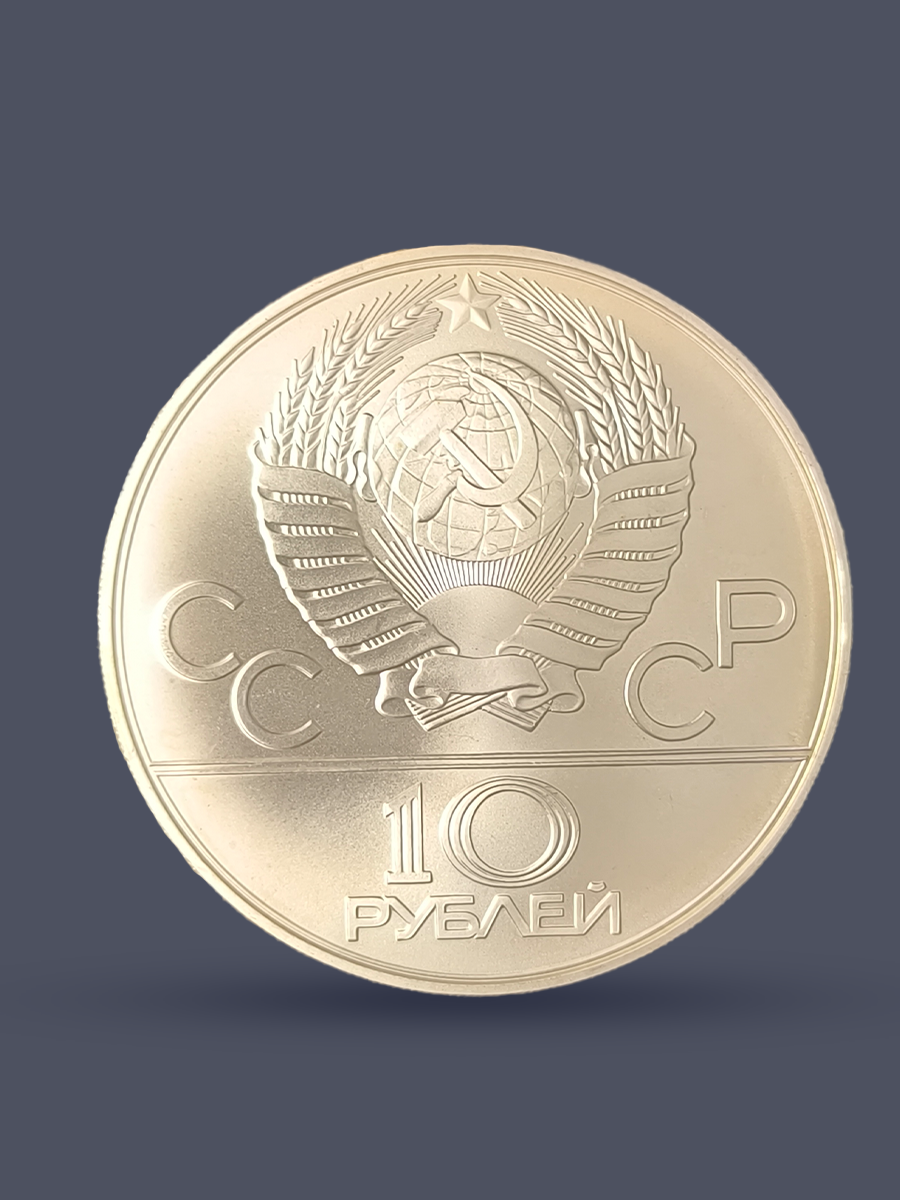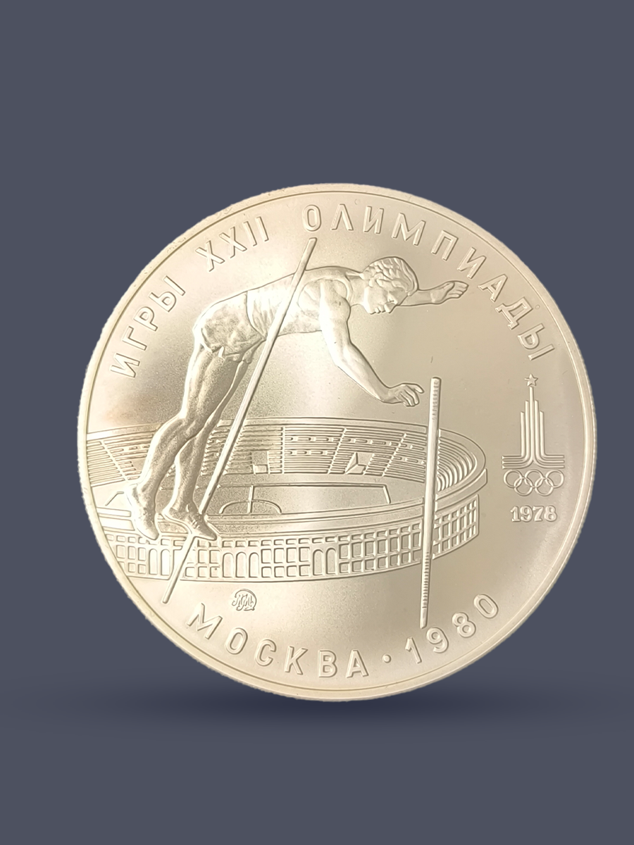 Инвестиционная серебряная монета России достоинством 10 рублей СССР 1978 год "XXII Олимпиада 1980 год в Москве - Прыжки с шестом".