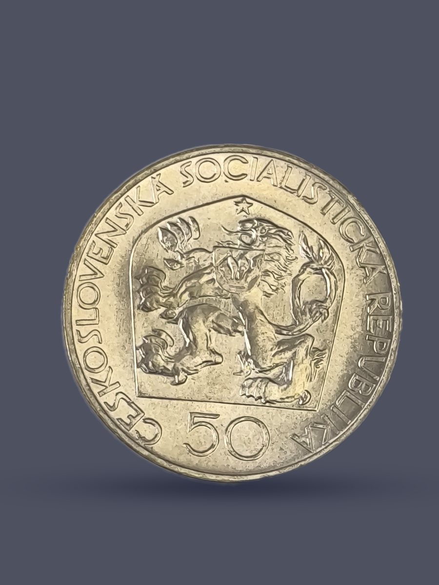 Подлинная серебряная монета Чехословакии достоинством 50 крон (korun) 1973 год.