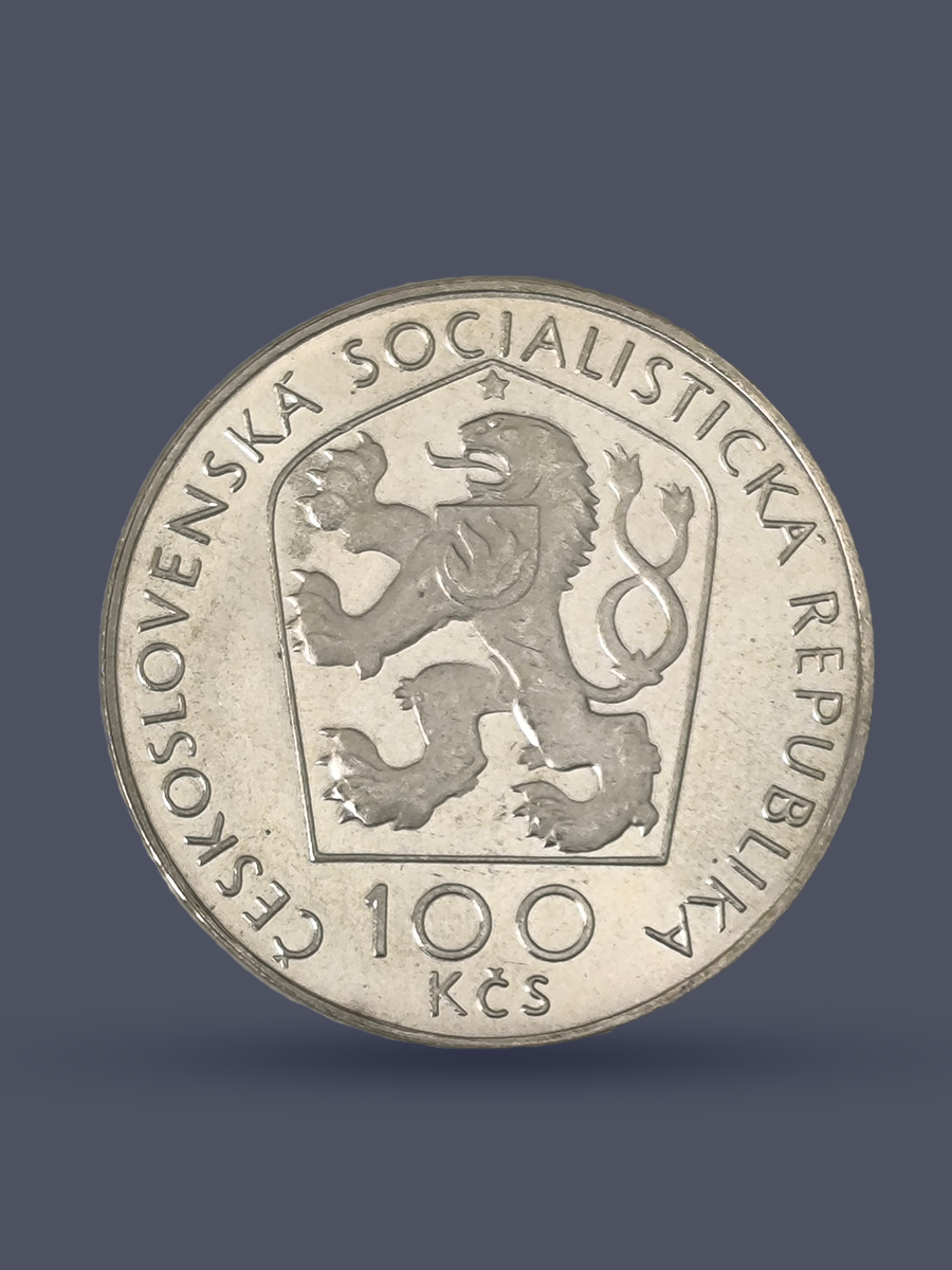 Подлинная серебряная монета Чехословакии достоинством 100 крон (korun) 1976 год.