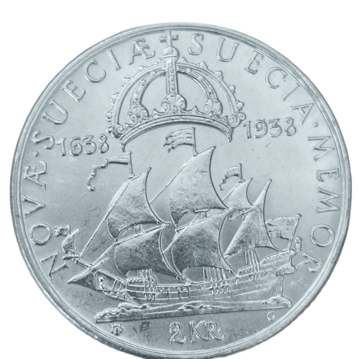 Подлинная монета Швеции достоинством Монета 2 кроны 1938 "300 лет поселению Делавэр".