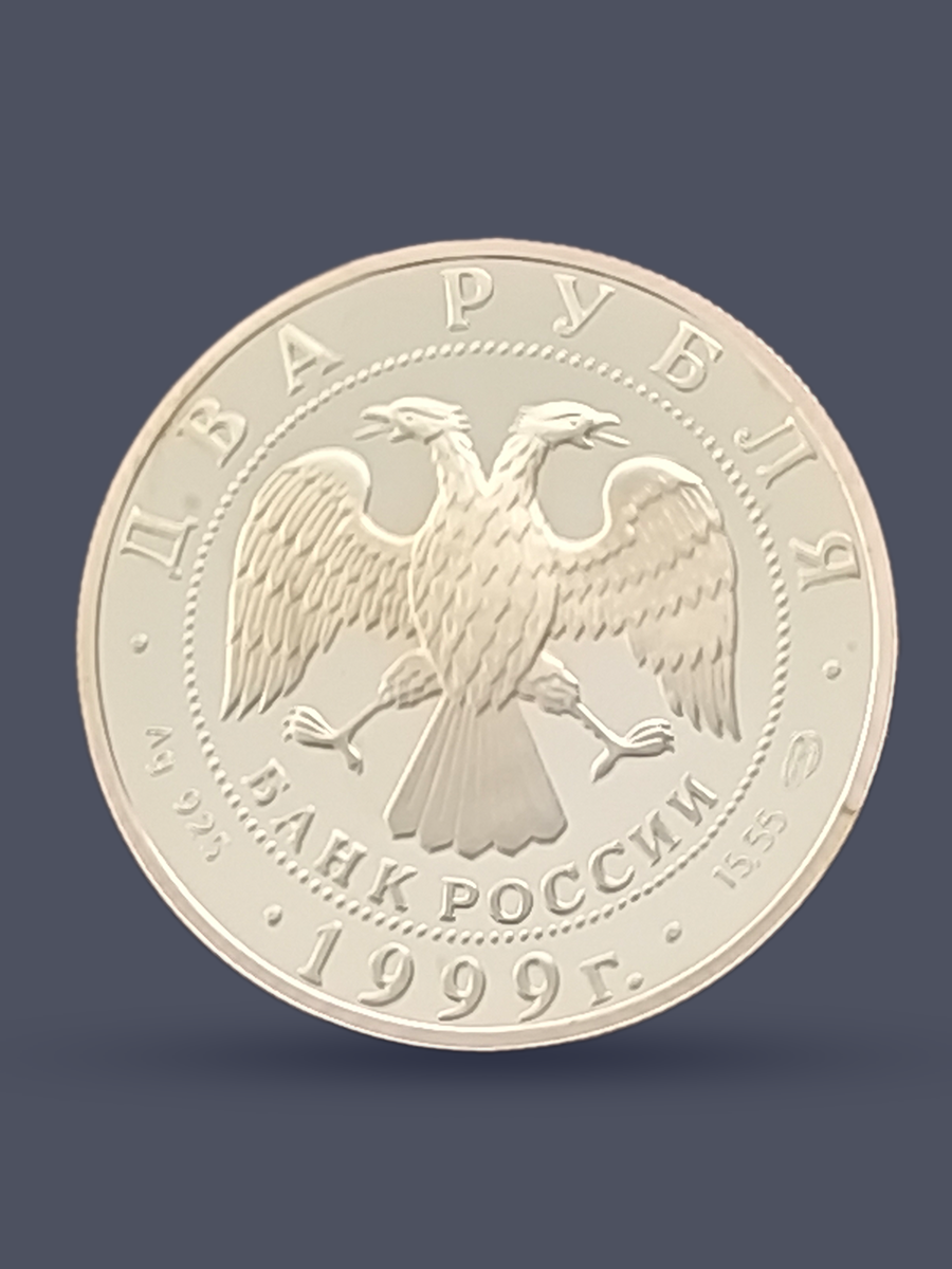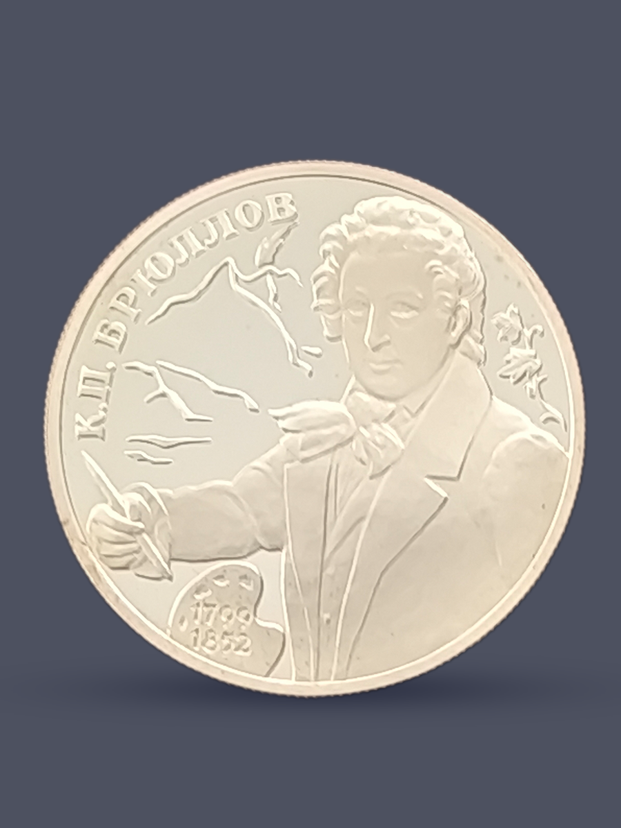 Подлинная серебряная монета России достоинством 2 рубля 1999 год "200-летие со дня рождения К.П. Брюллова".
