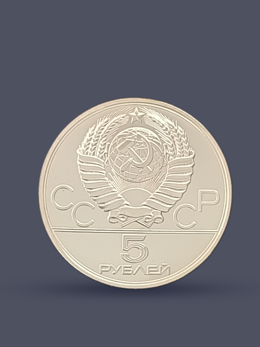 Подлинная серебряная монета России достоинством 5 рублей СССР 1978 год.