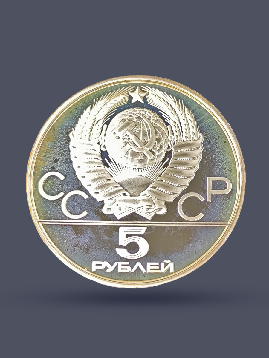 Подлинная серебряная монета России достоинством 5 рублей СССР 1978 год.